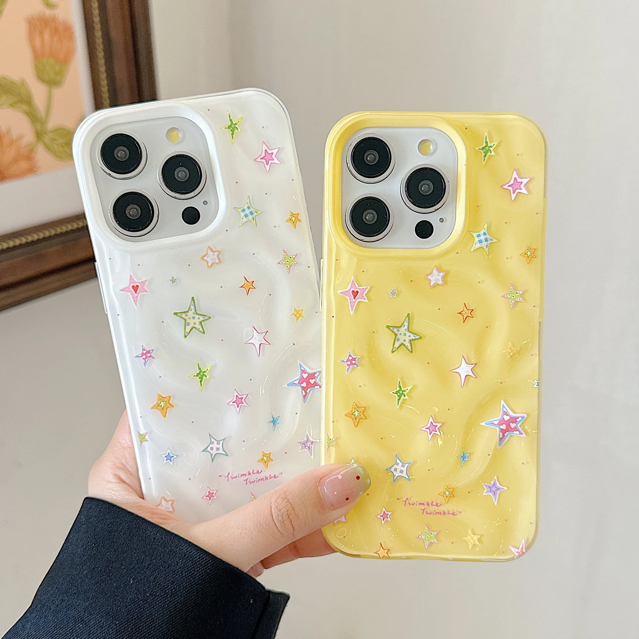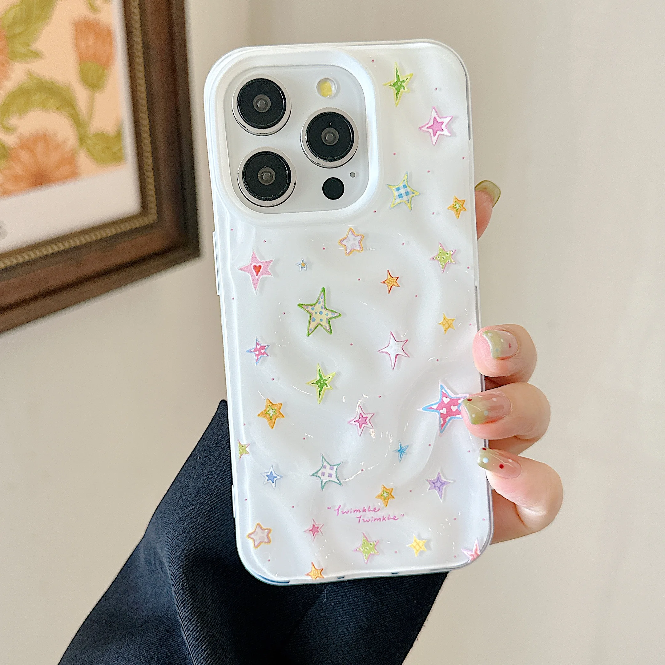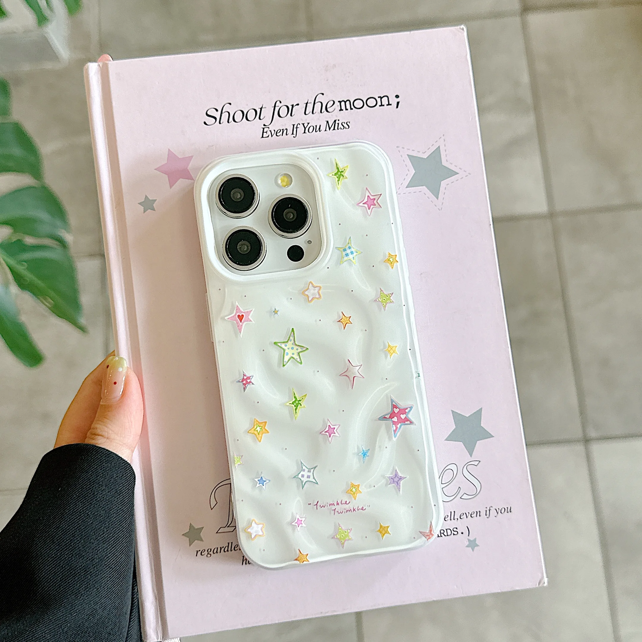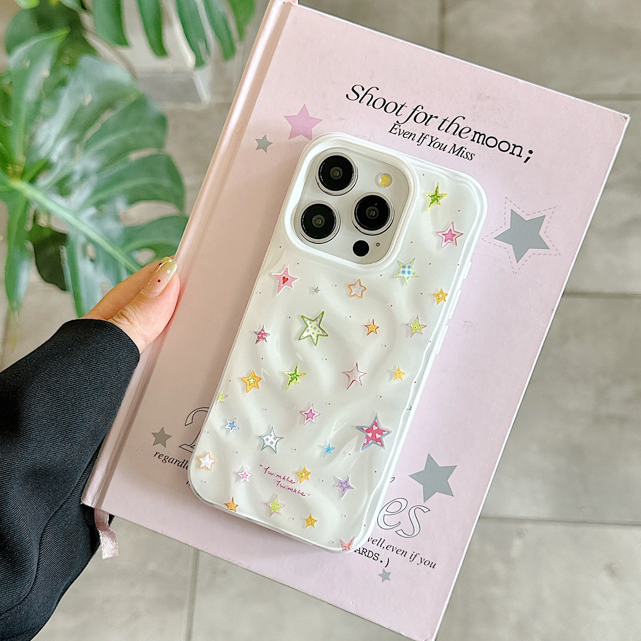 Fundas de teléfono con textura de pliegues y estrellas de amor para IPhone14 15 16 Pro Max, funda bonita de silicona suave a prueba de golpes a la moda 13