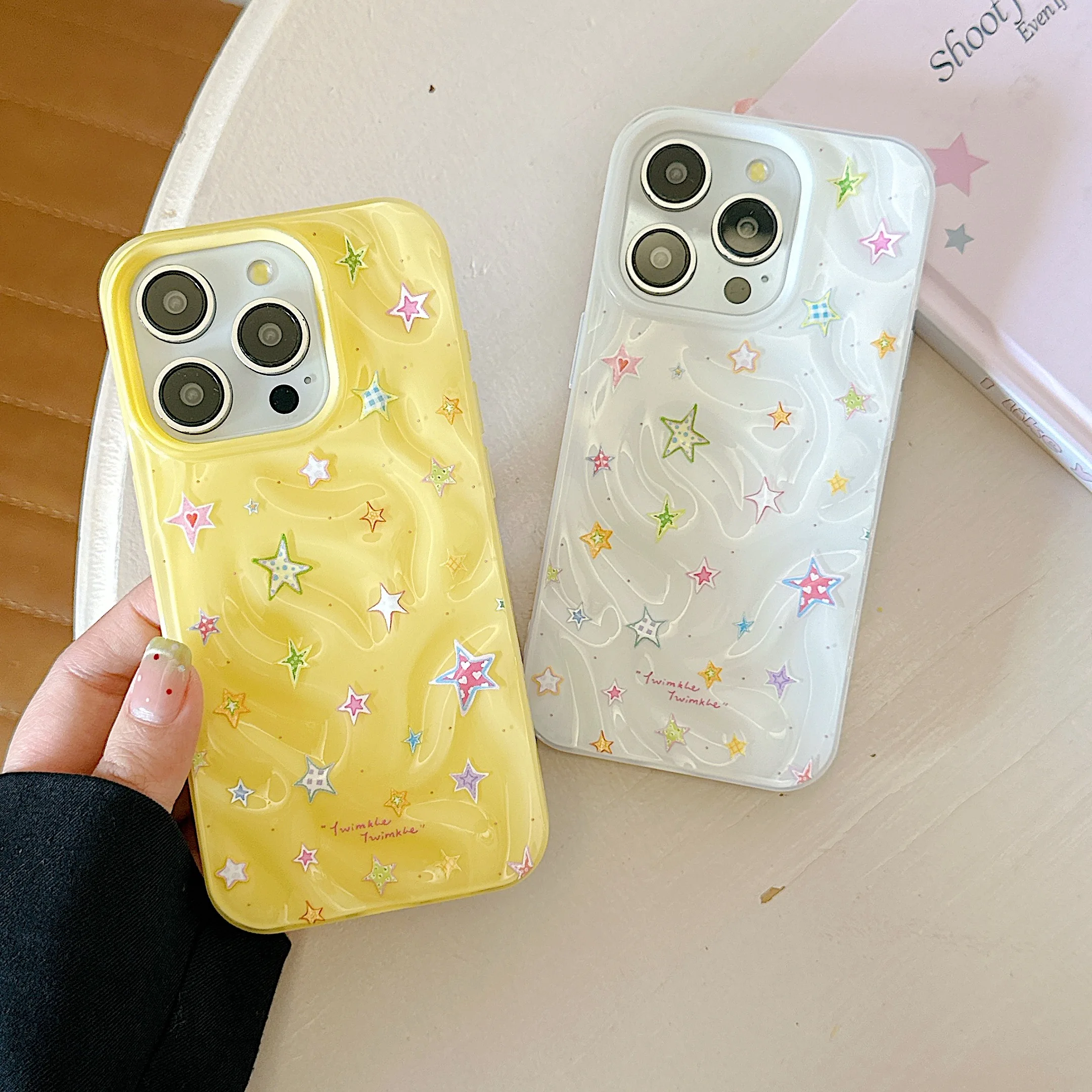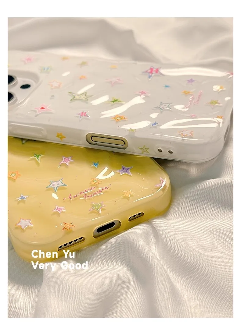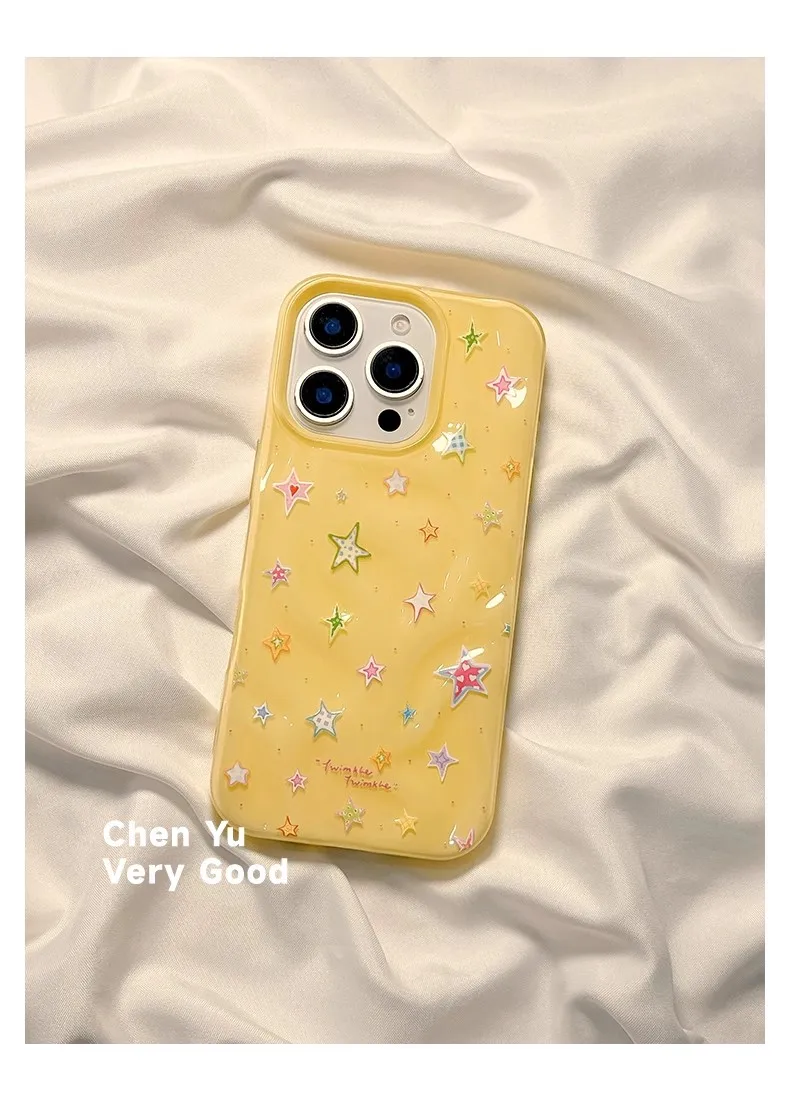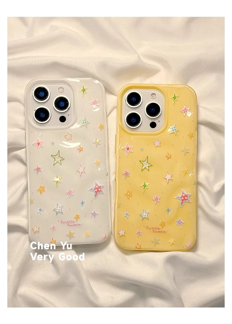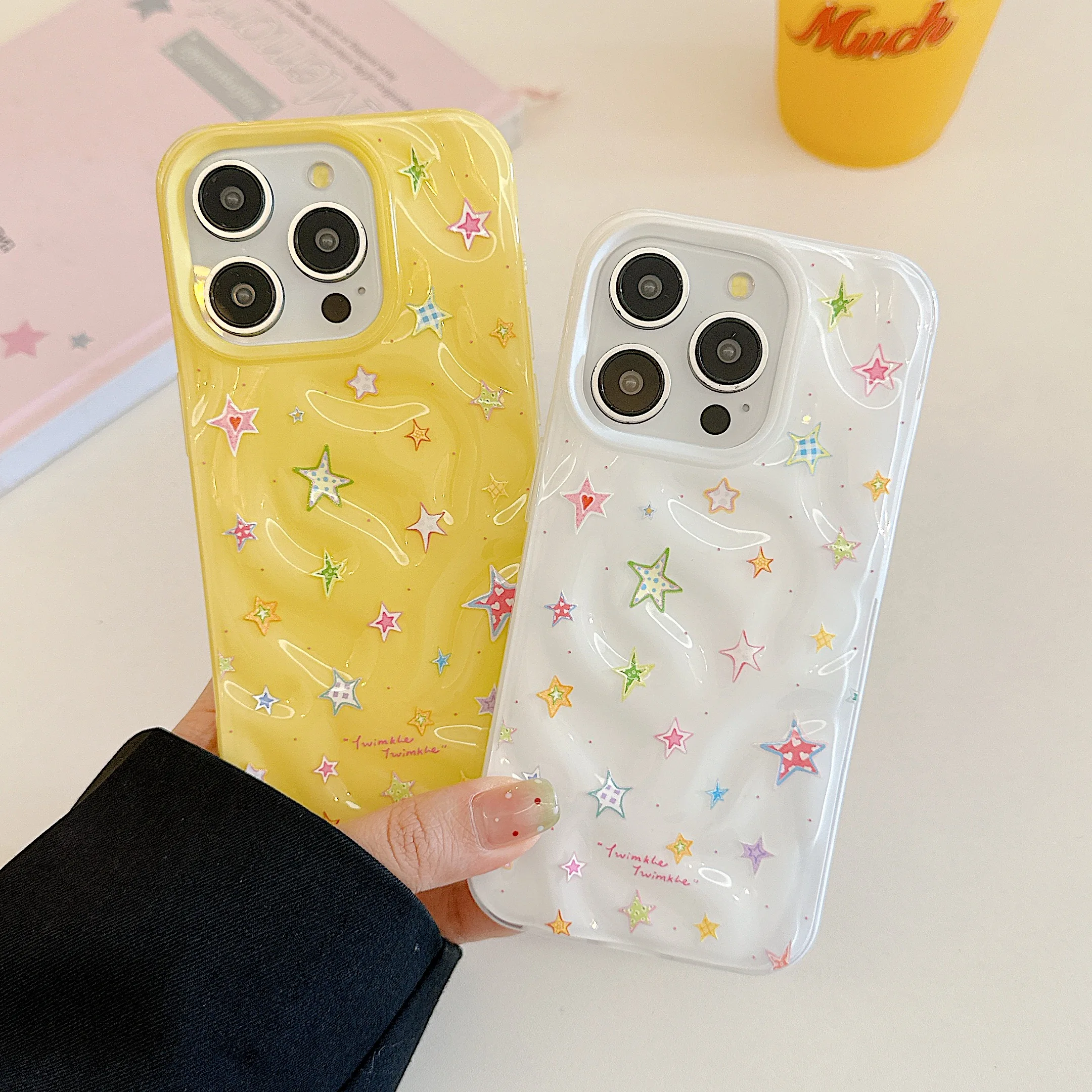 Fundas de teléfono con textura de pliegues y estrellas de amor para IPhone14 15 16 Pro Max, funda bonita de silicona suave a prueba de golpes a la moda 13
