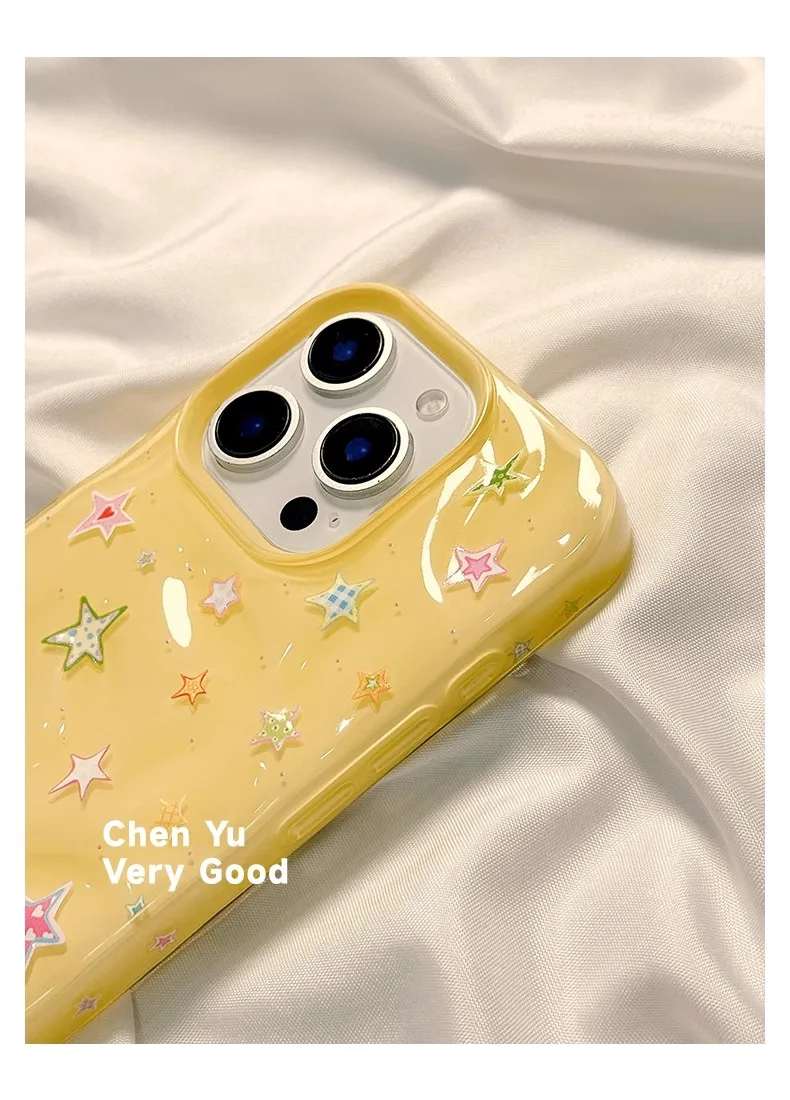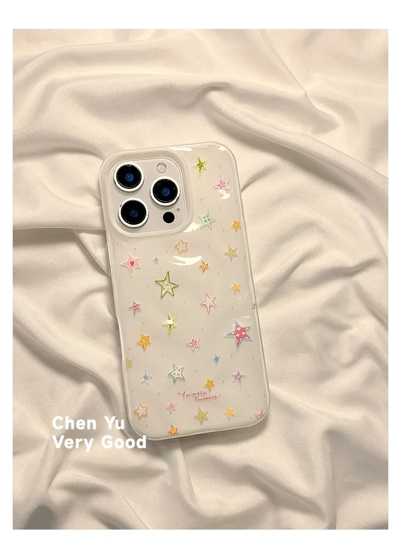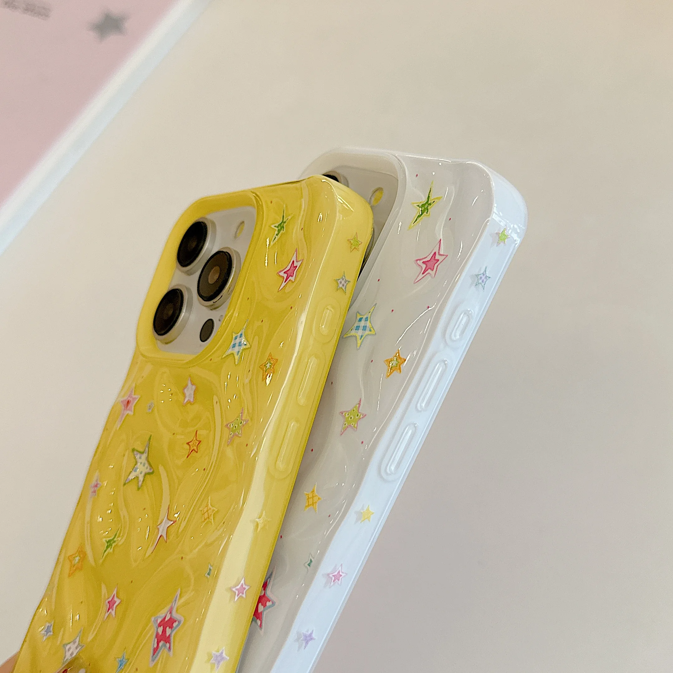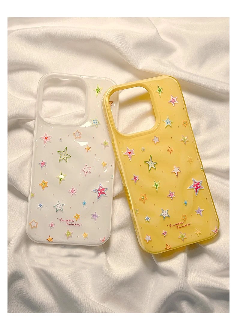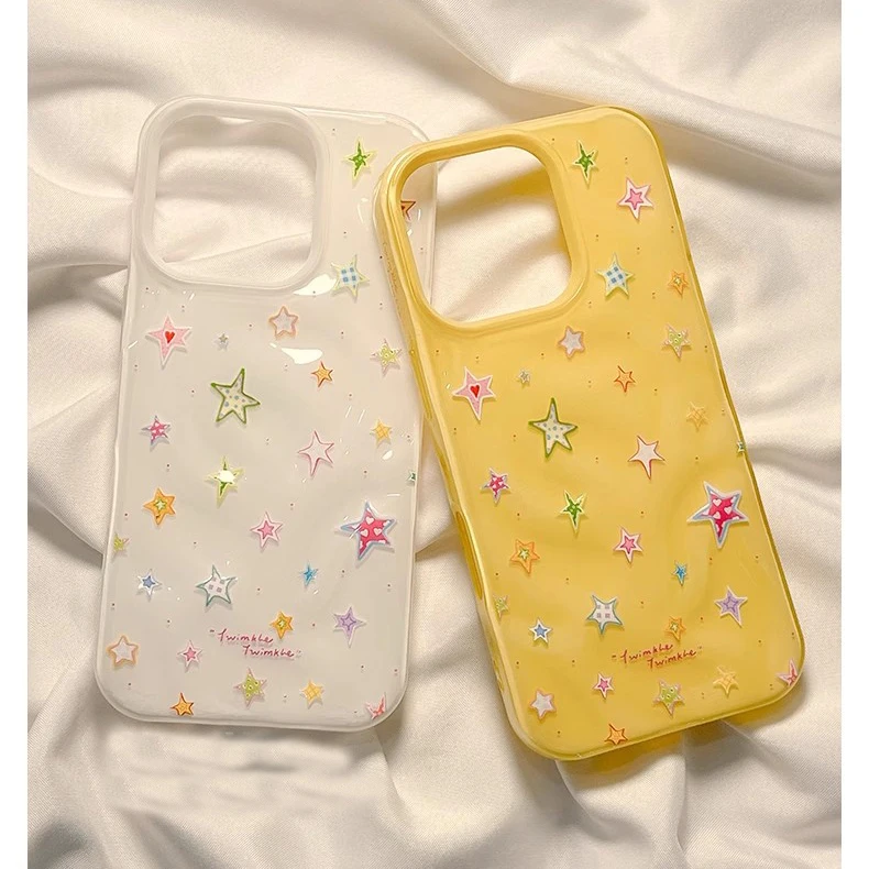 Fundas de teléfono con textura de pliegues y estrellas de amor para IPhone14 15 16 Pro Max, funda bonita de silicona suave a prueba de golpes a la moda 13