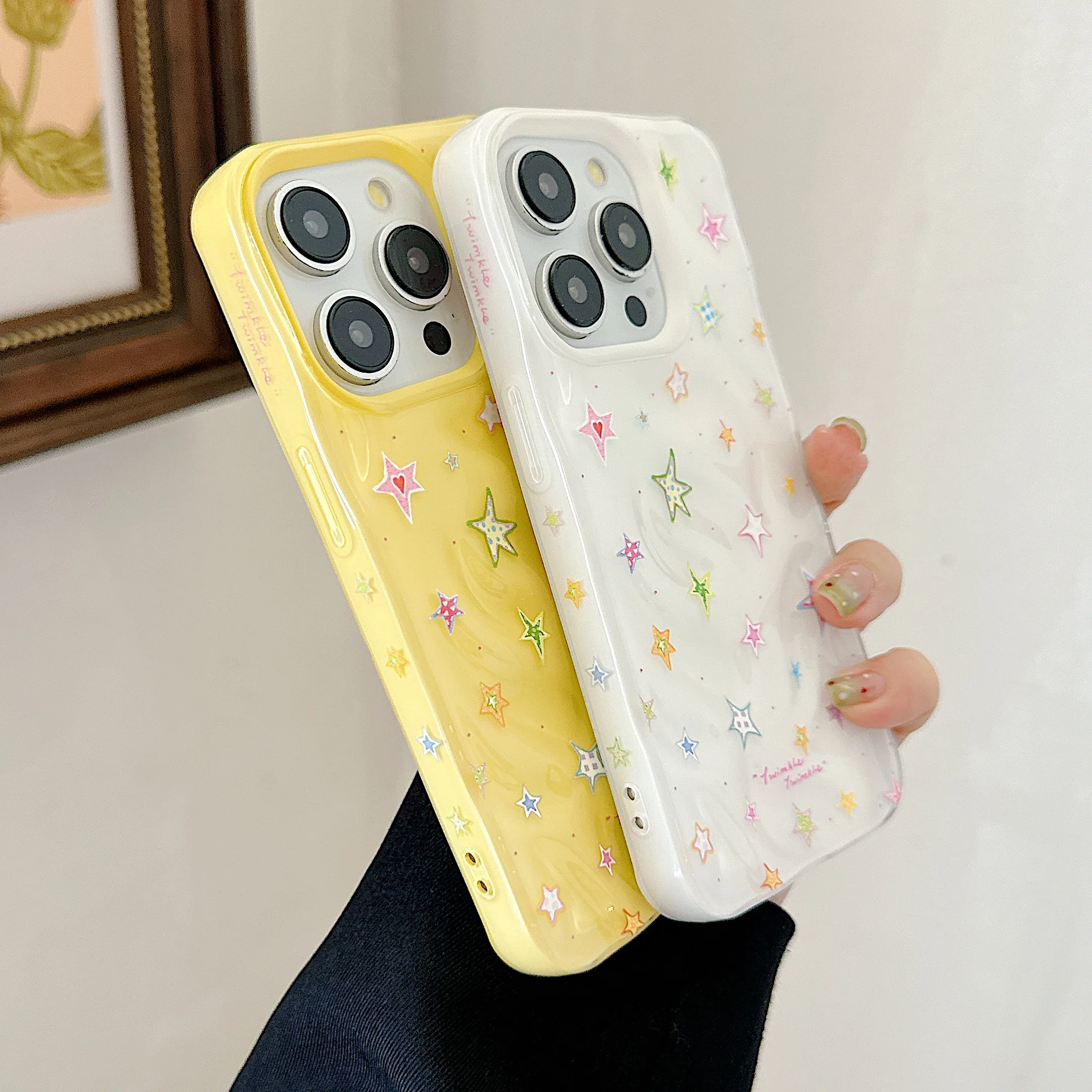 Fundas de teléfono con textura de pliegues y estrellas de amor para IPhone14 15 16 Pro Max, funda bonita de silicona suave a prueba de golpes a la moda 13