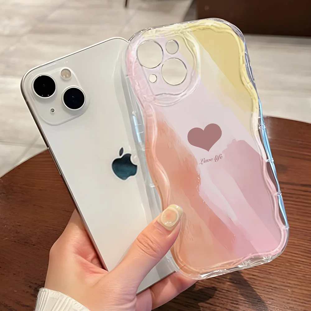 Fundas de teléfono con borde ondulado transparente para iPhone 15, funda para iPhone 11 14 15 12 13 Pro Max X XR XS Max 7 8 Plus SE 2020 2022, carcasa blanda