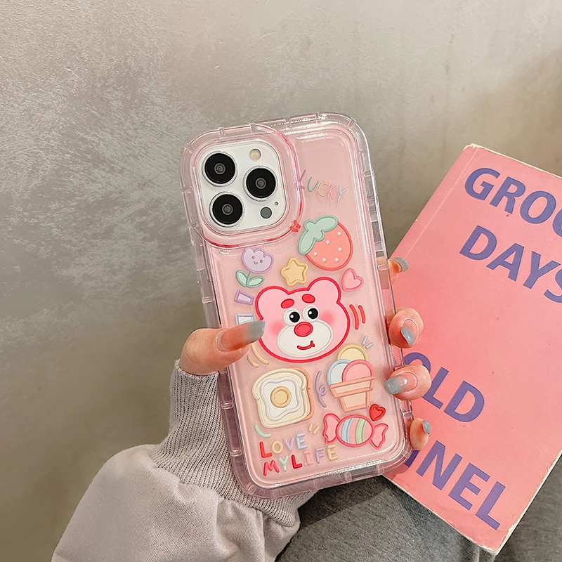 Fundas bonitas de dibujos animados transparentes para IPhone 15 11 12 13 14 Pro Max, funda para IPhone XR X Xs 7 8 Plus SE 2020 Airbags, funda blanda cuadrada