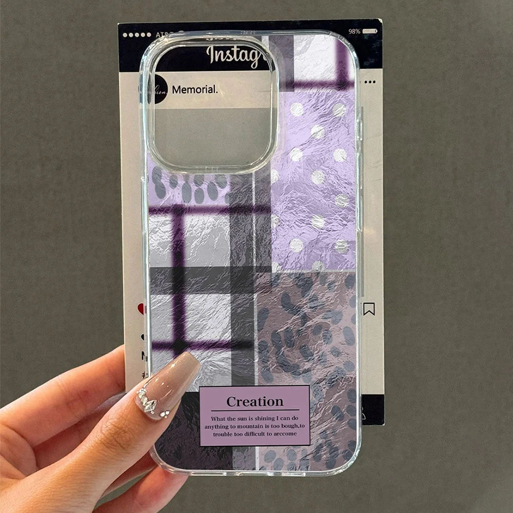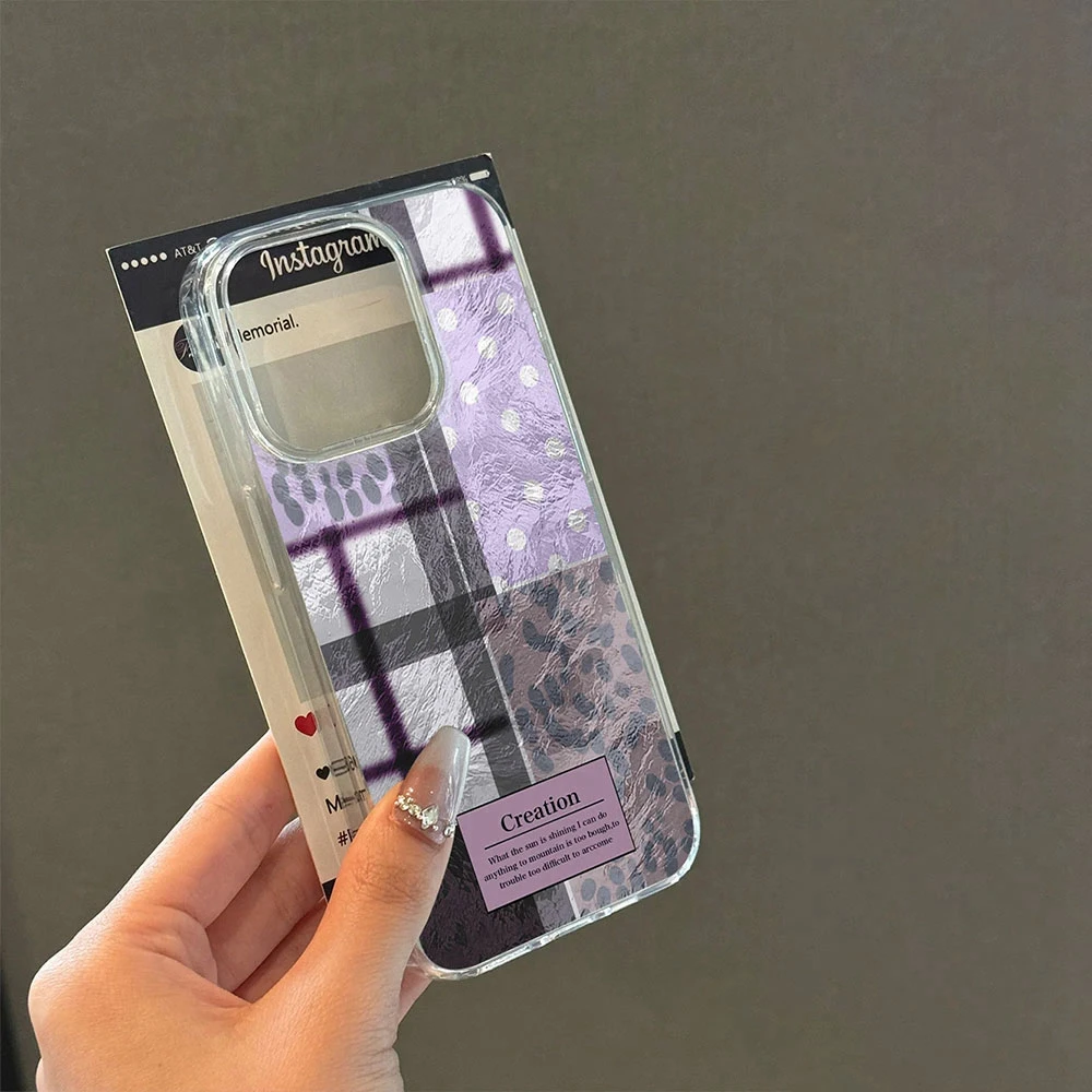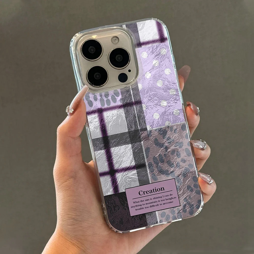 Comprar Fundas de teléfono transparentes con estampado de leopardo y rejilla de empalme púrpura para Apple iphone 16 15 14 13 Pro Max 16e 7 16plus, funda de silicona degradada