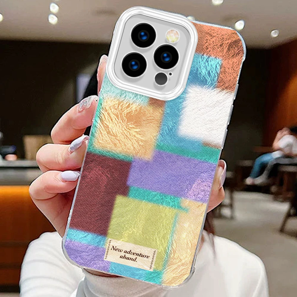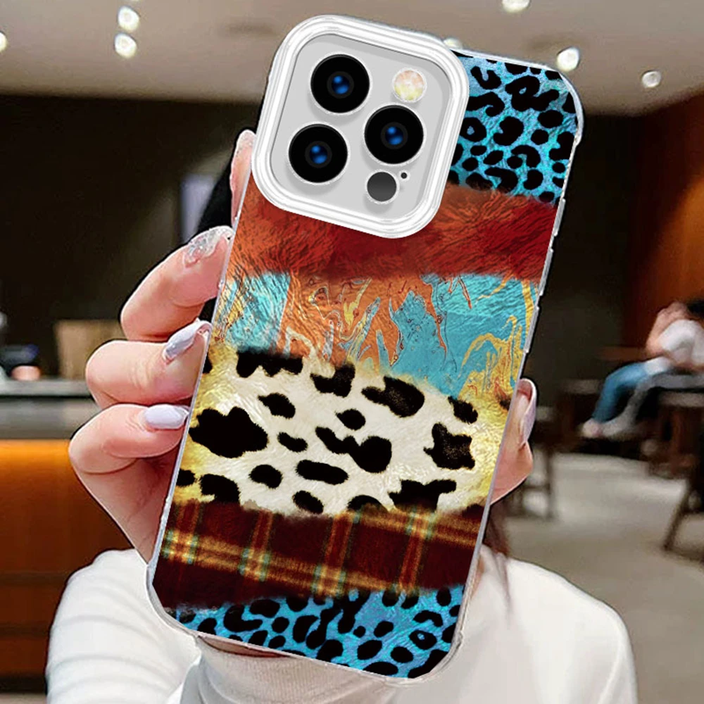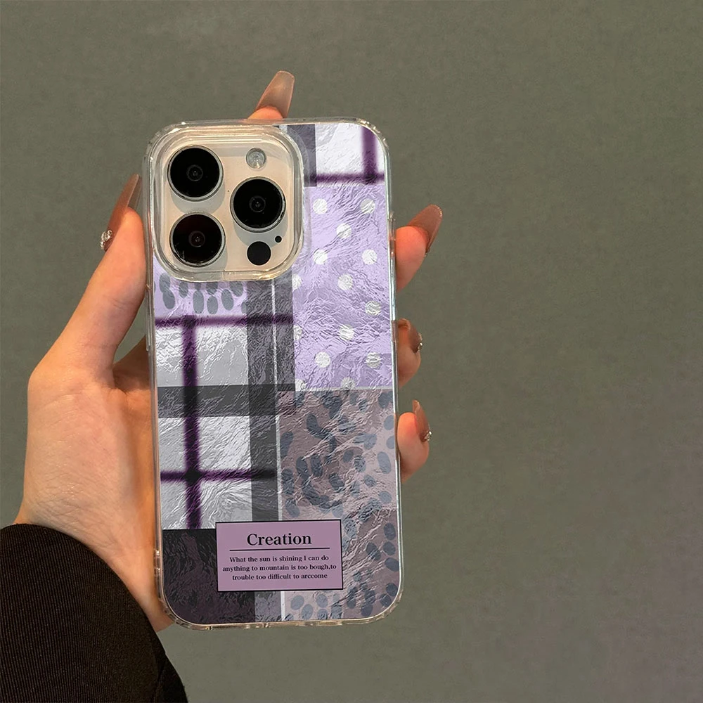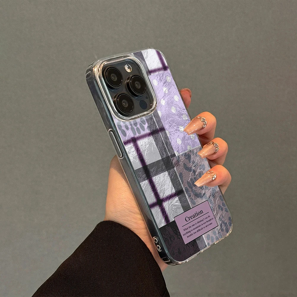 Comprar Fundas de teléfono transparentes con estampado de leopardo y rejilla de empalme púrpura para Apple iphone 16 15 14 13 Pro Max 16e 7 16plus, funda de silicona degradada