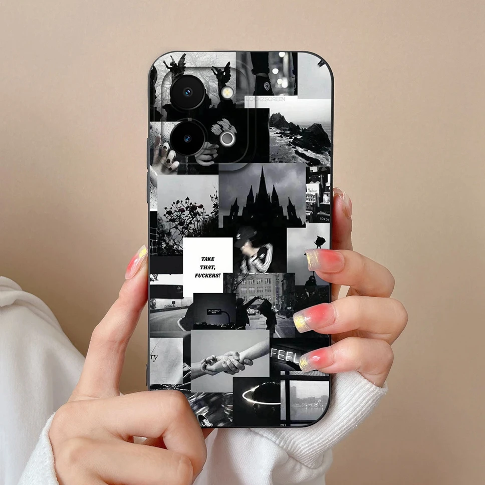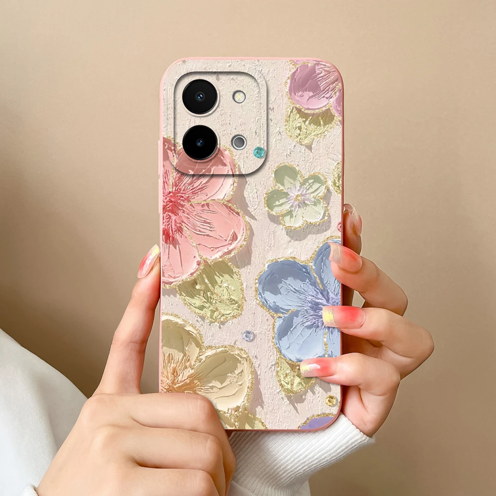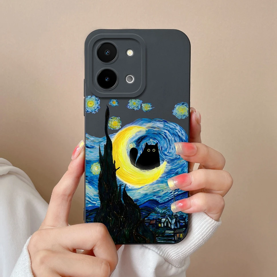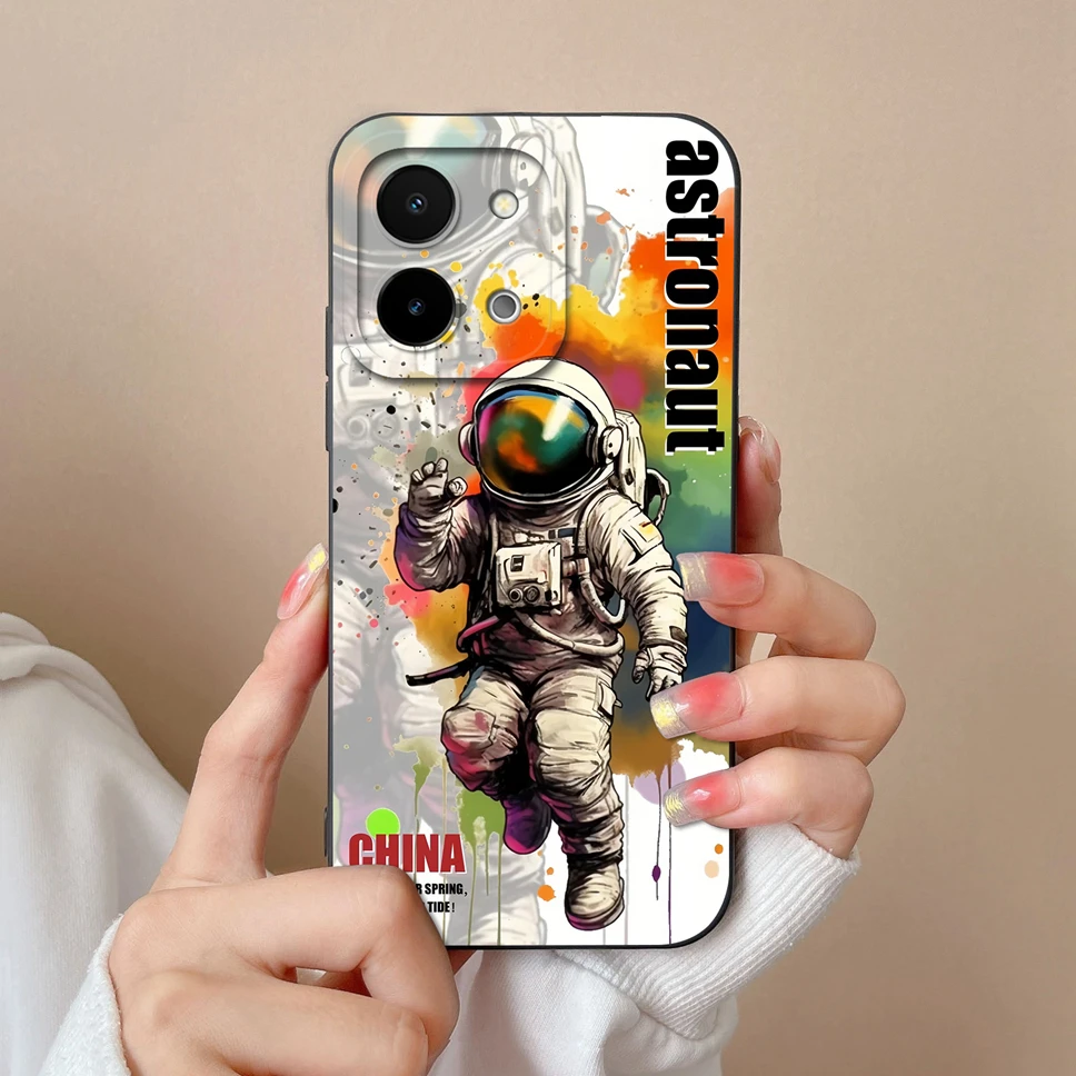 Para Vivo Y28 fundas de teléfono encantador gato divertido astronauta suave cuadrado silicona a prueba de golpes Fundas protectoras traseras para Vivo Y 28 Fundas