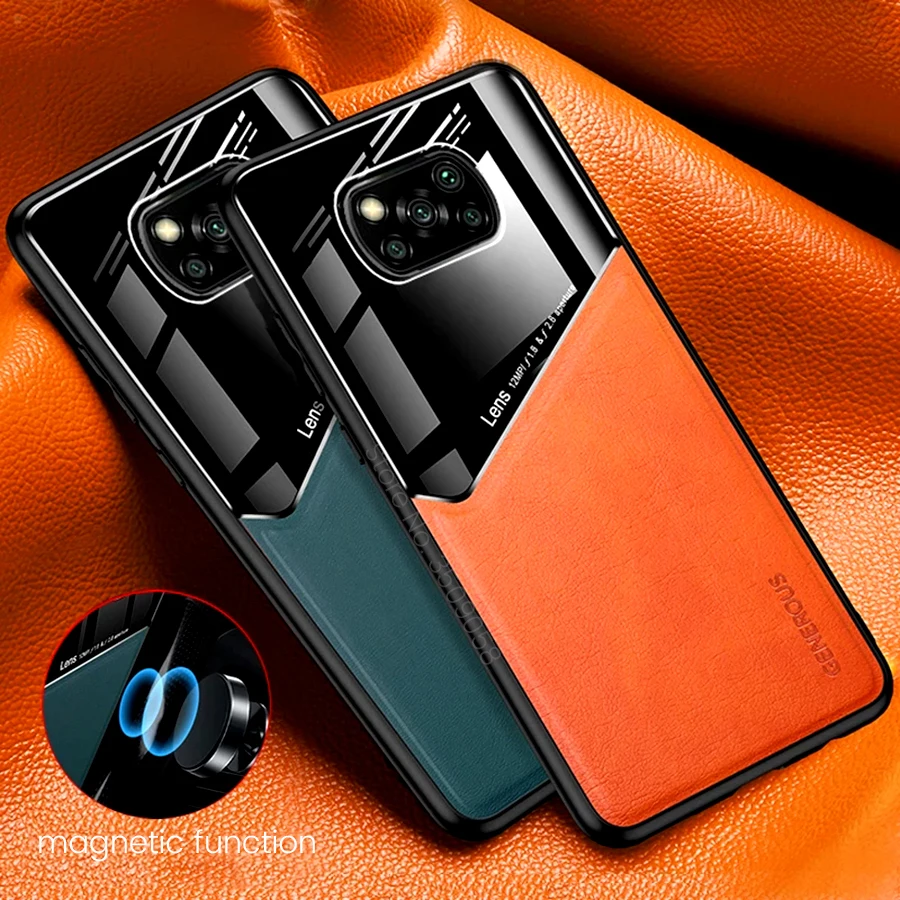 car magnetic holder plexiglass leather texture cases cover for xiaomi pocophone poco x3 m3 m4 pro 5g nfc poko pocco little x 3 gt nfs shockproof coquee