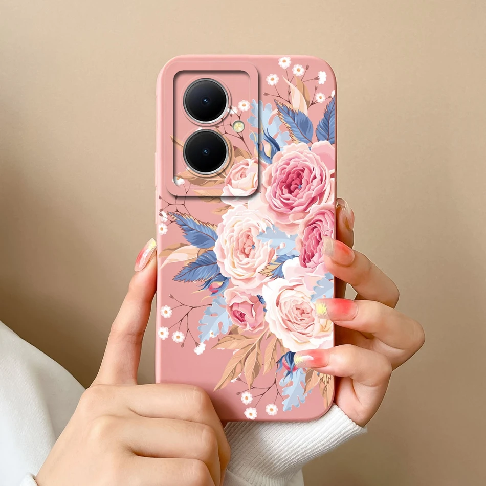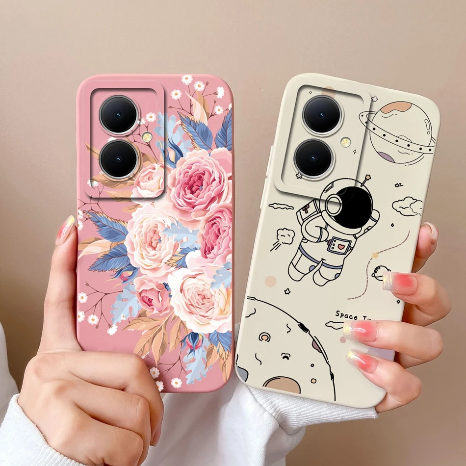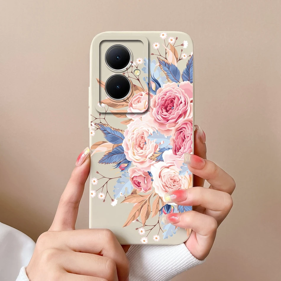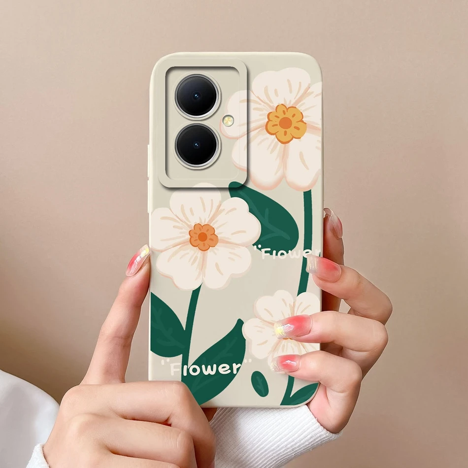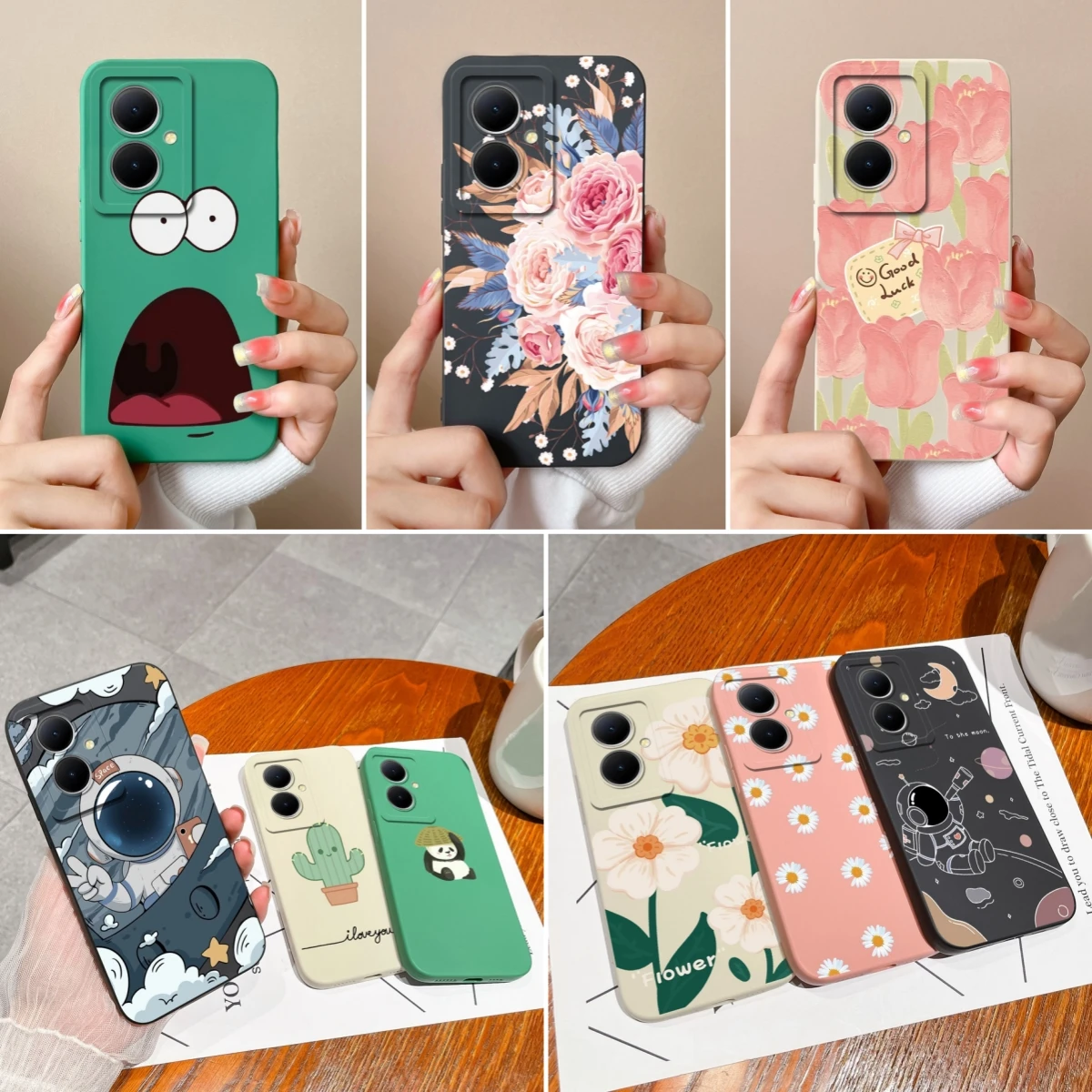 Fundas para Vivo Y78 5G Y78Plus, actualización de flores de dibujos animados, funda trasera de protección de lente cuadrada de silicona líquida suave para VivoY78 + Coque