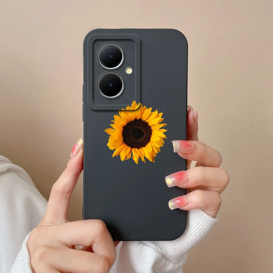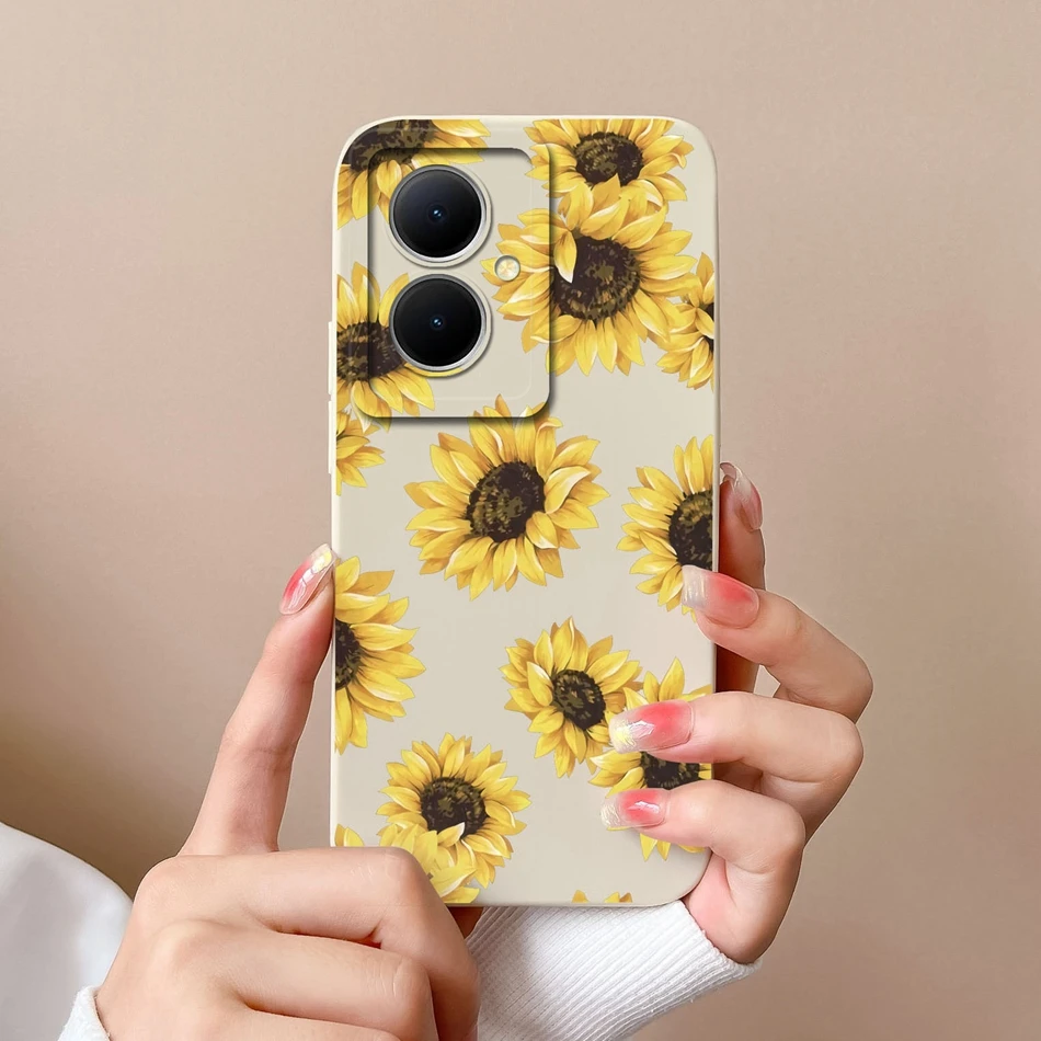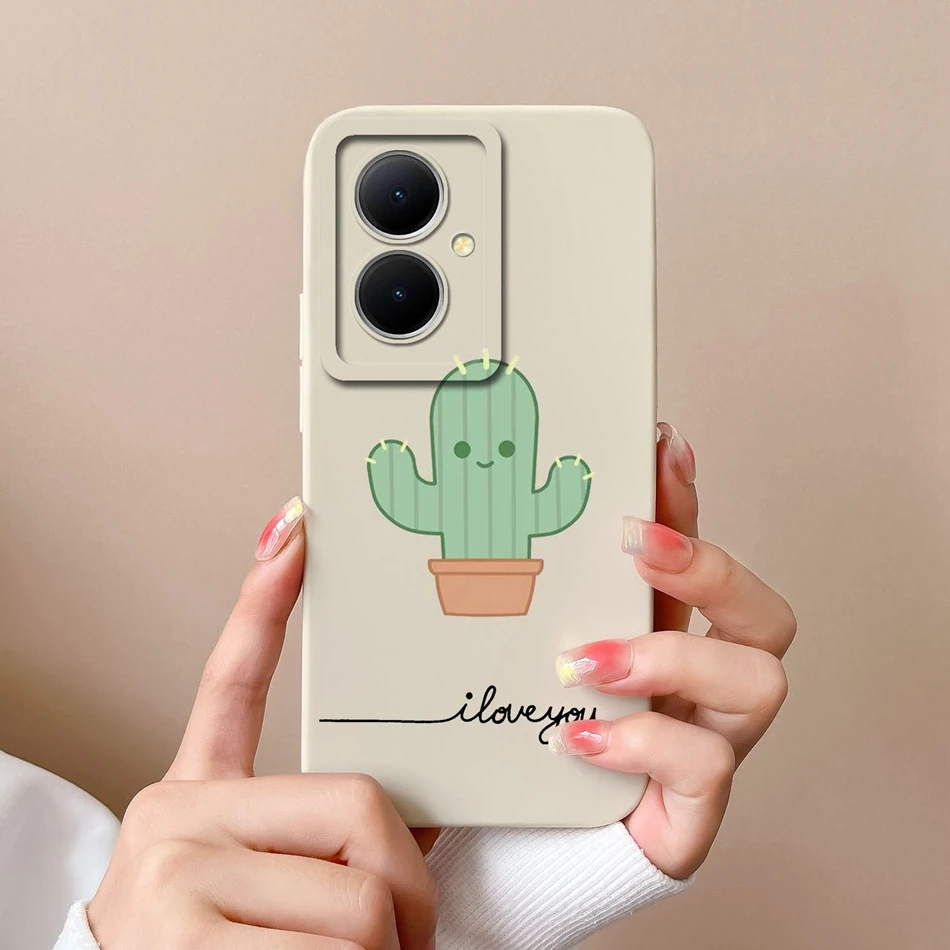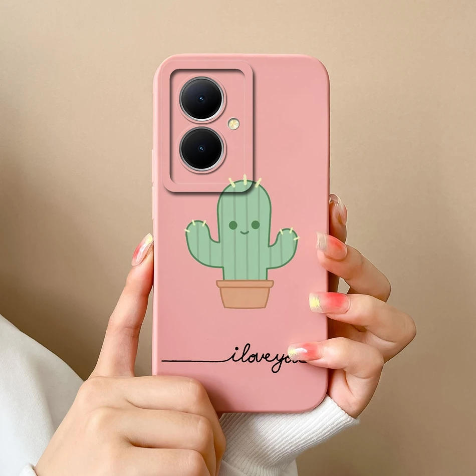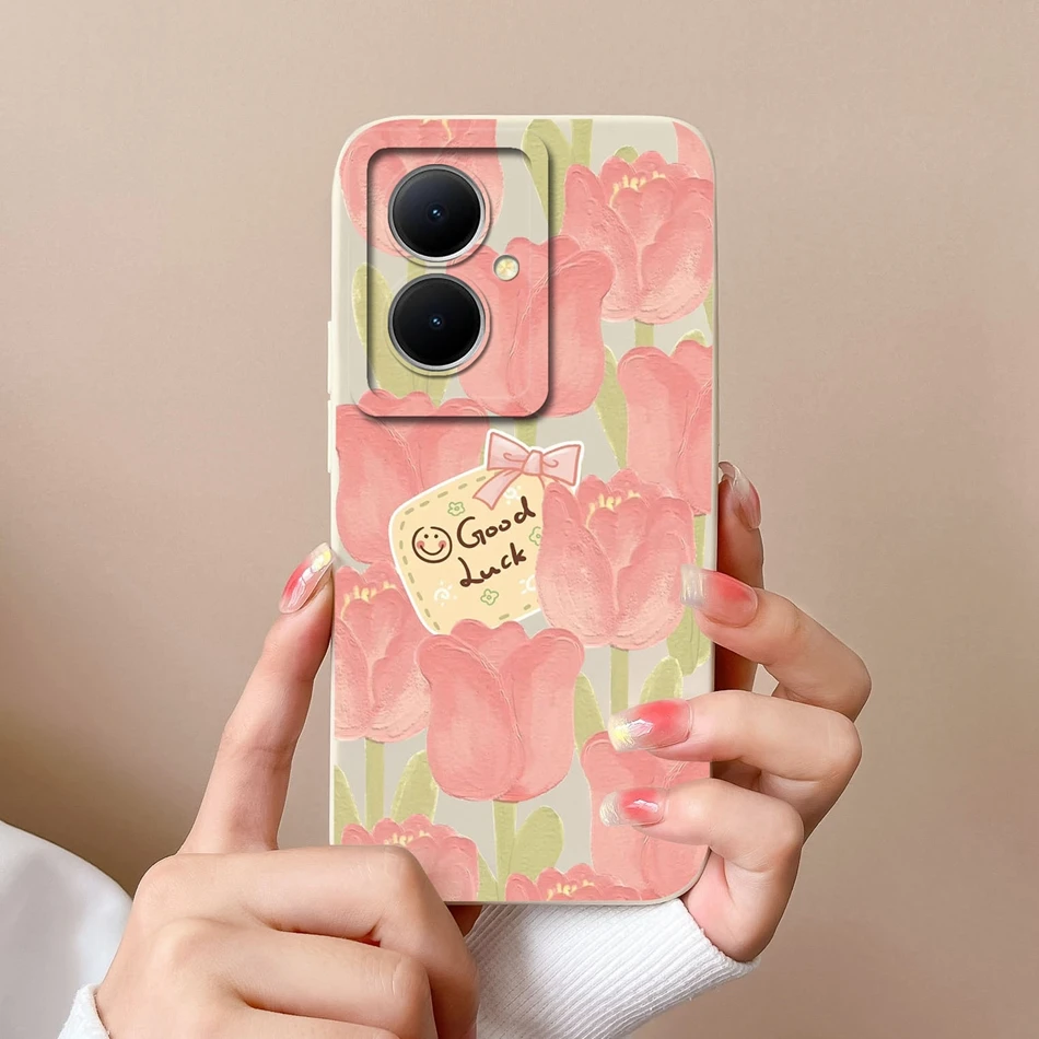 Fundas para Vivo Y78 5G Y78Plus, actualización de flores de dibujos animados, funda trasera de protección de lente cuadrada de silicona líquida suave para VivoY78 + Coque