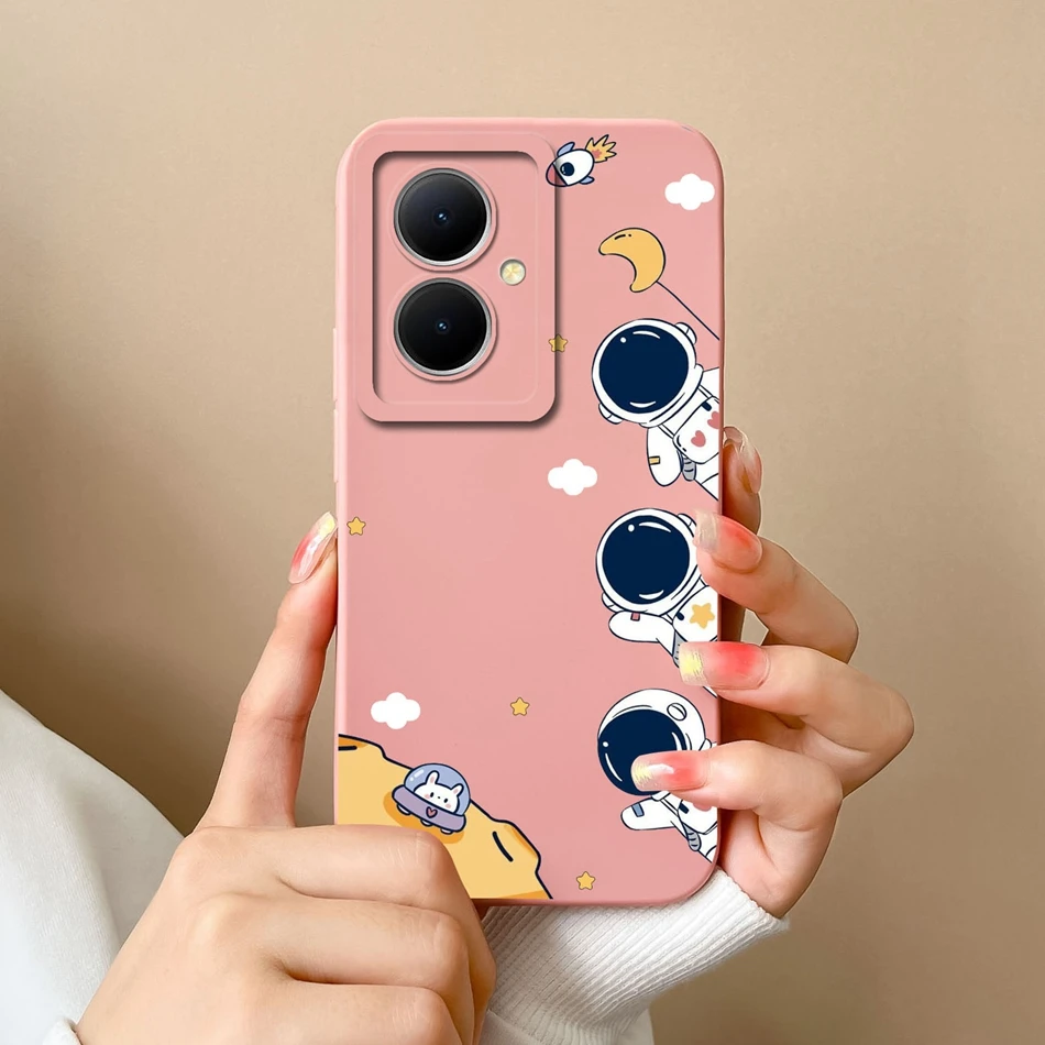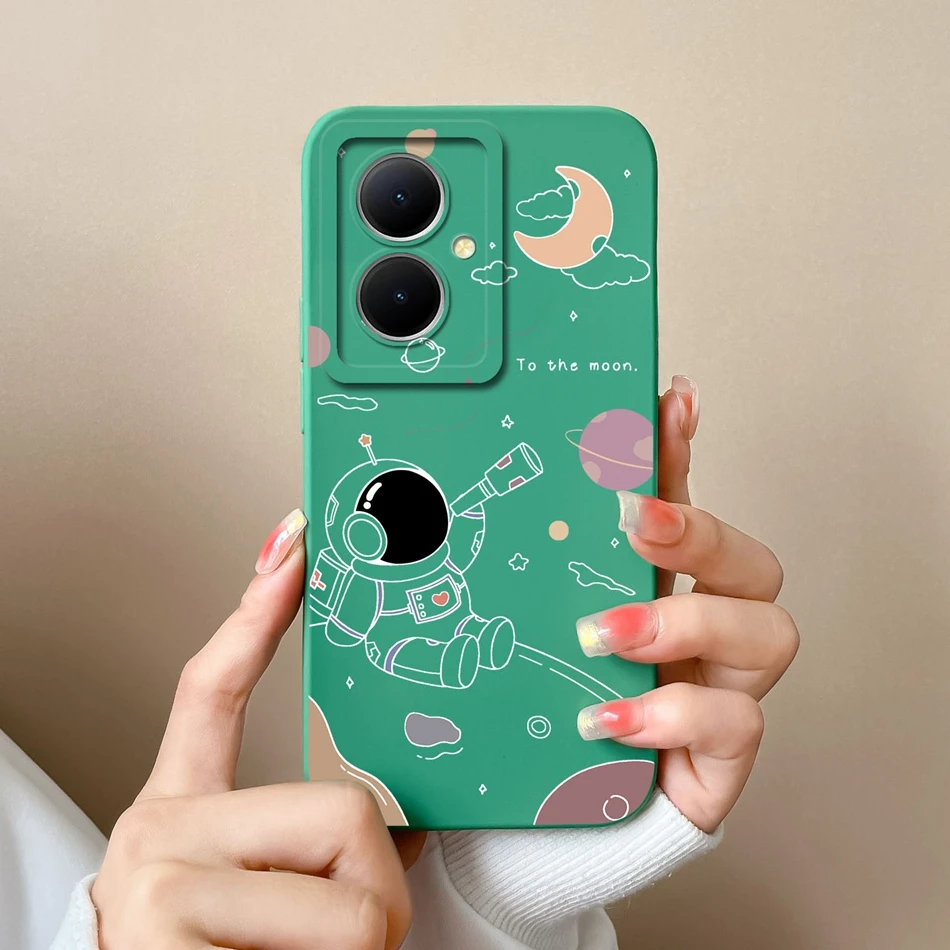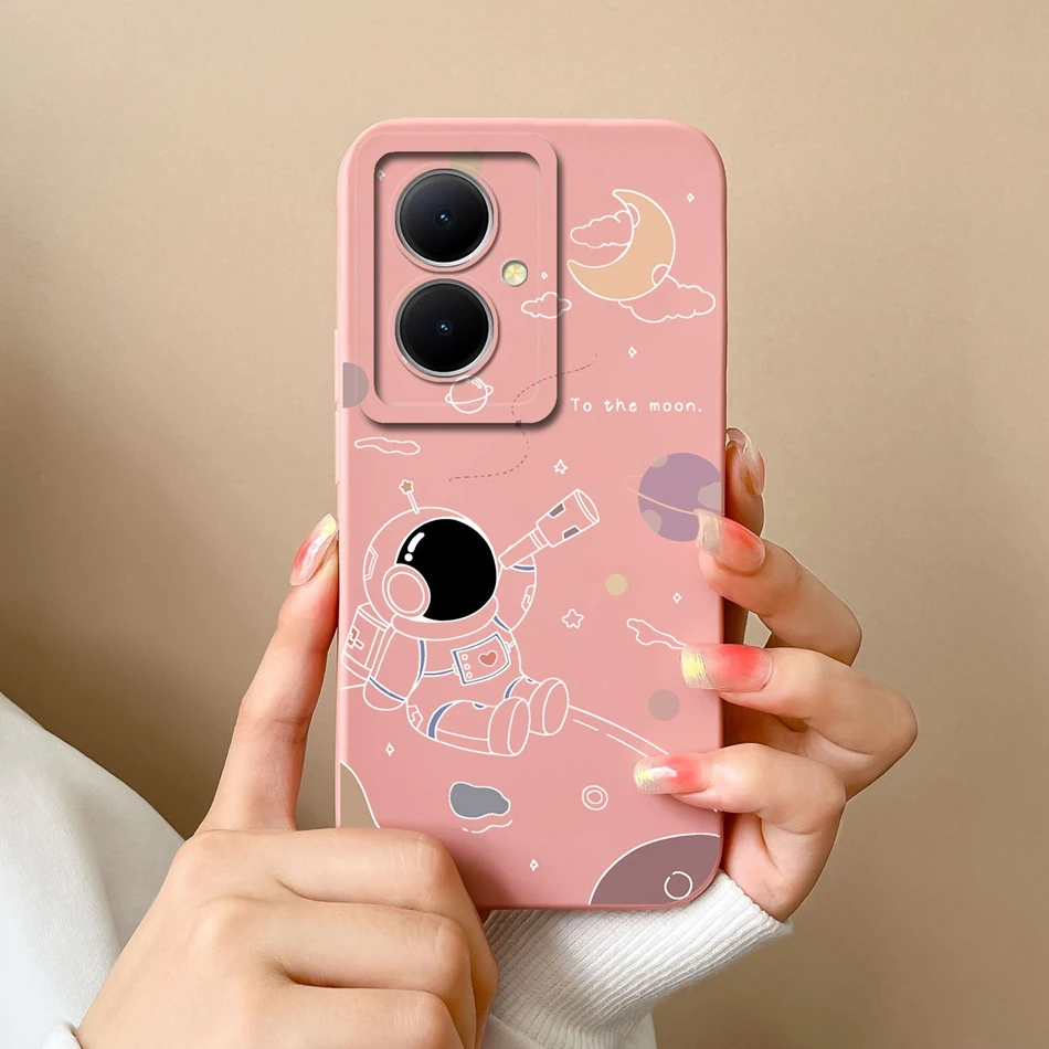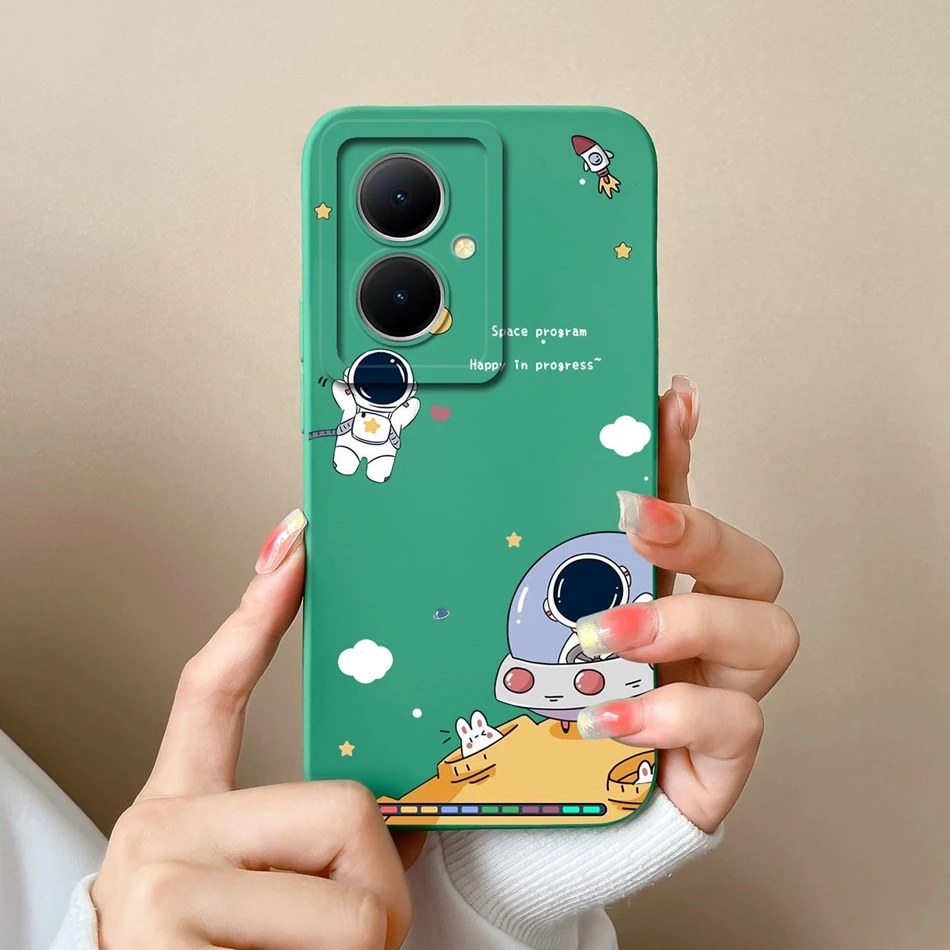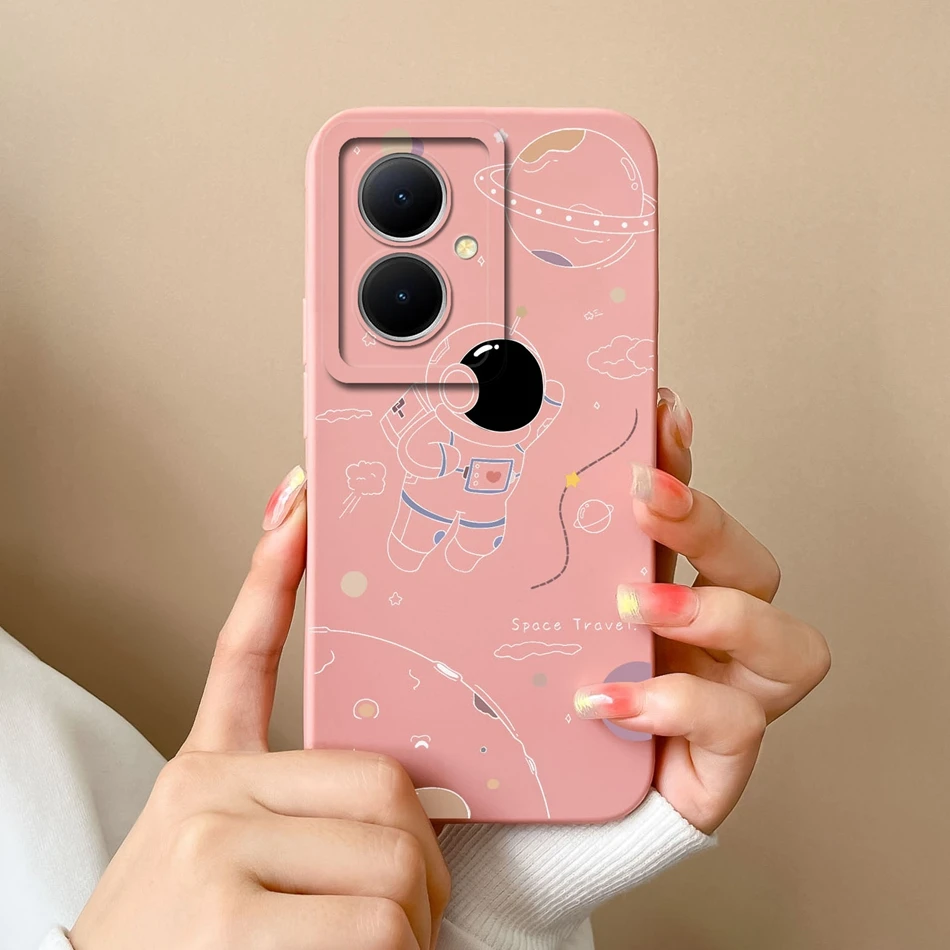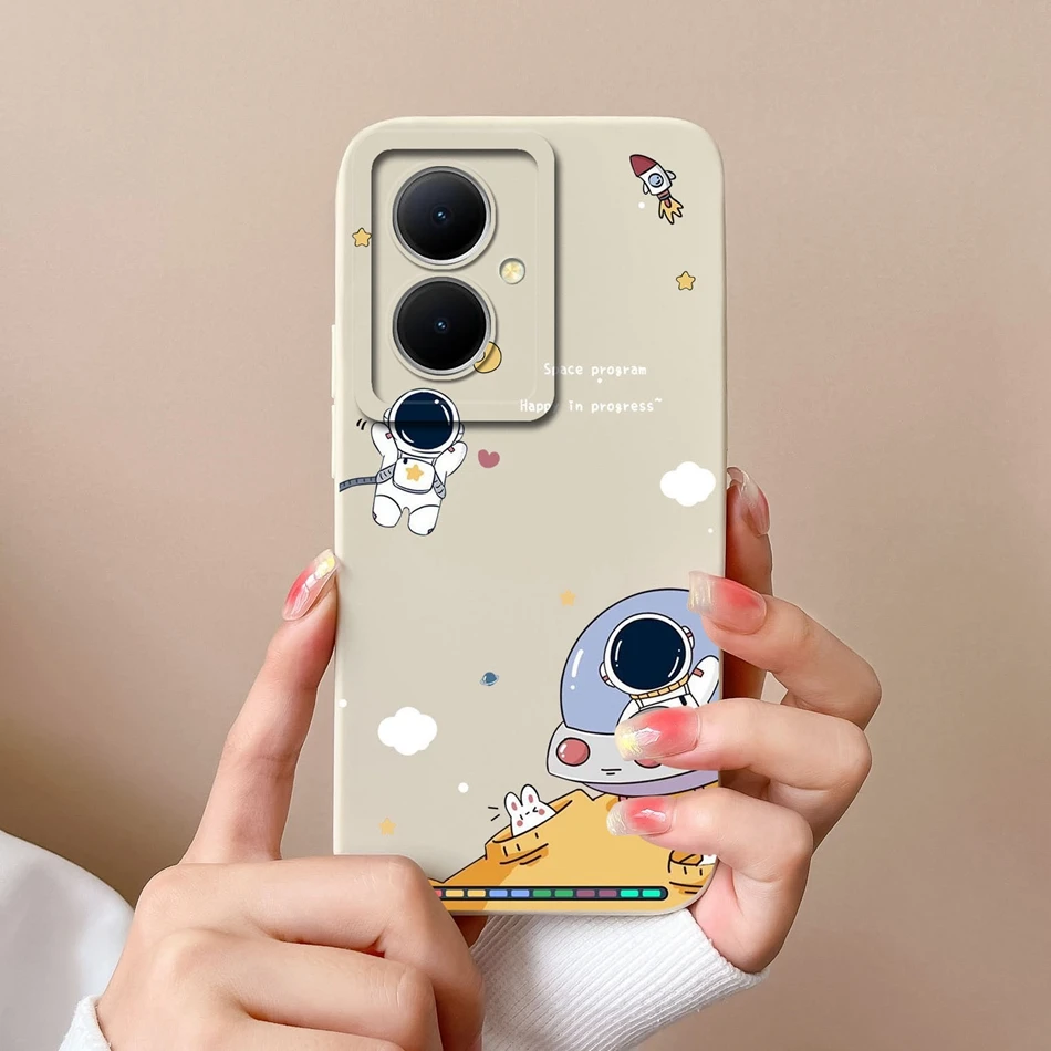 Fundas para Vivo Y78 5G Y78Plus, actualización de flores de dibujos animados, funda trasera de protección de lente cuadrada de silicona líquida suave para VivoY78 + Coque