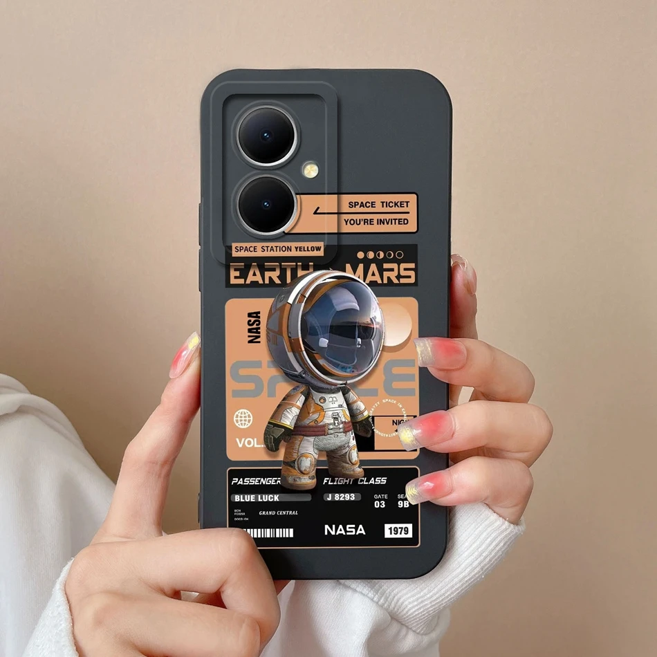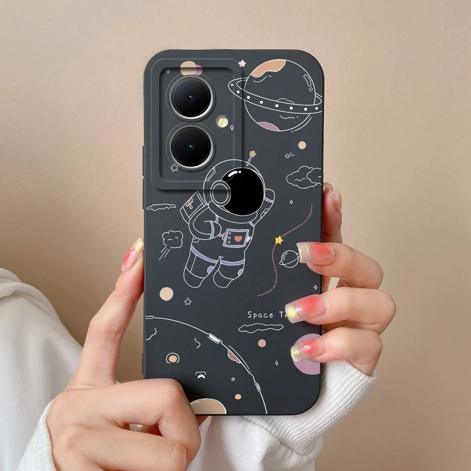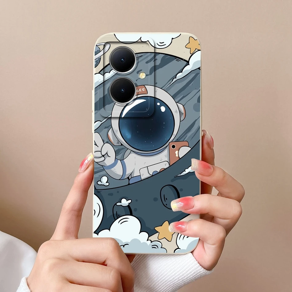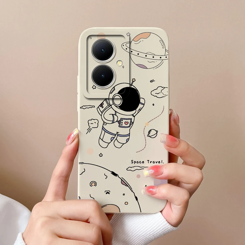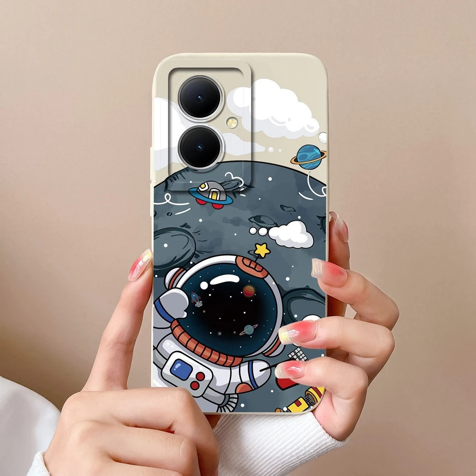 Fundas para Vivo Y78 5G Y78Plus, actualización de flores de dibujos animados, funda trasera de protección de lente cuadrada de silicona líquida suave para VivoY78 + Coque