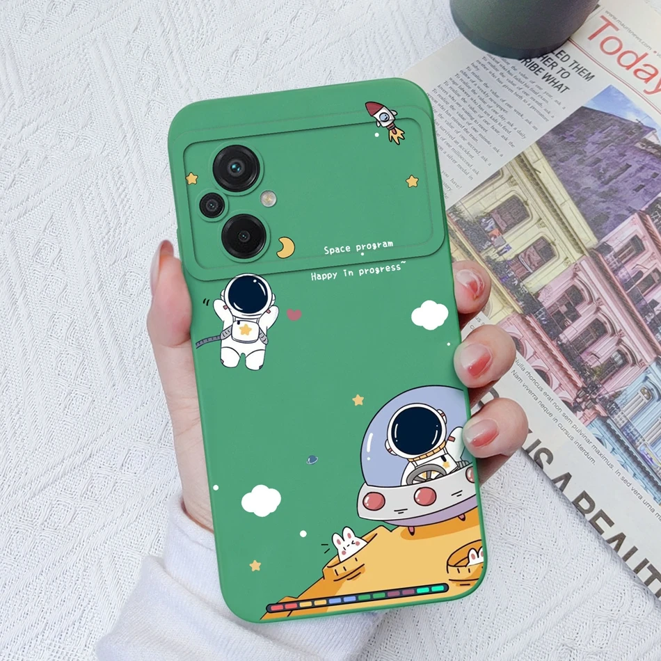 Fundas para Xiaomi Poco M5S Astronaut Flower Soft Liquid Silicone Protección completa Anti Drop Back Cover para PocoM5 M5 S Funda