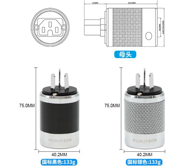 Comprar Furutech-enchufe de alimentación de fibra de carbono chapado en rodio, Conector de cable de alimentación de CA, estándar AU/US, FI-50M, 1 par