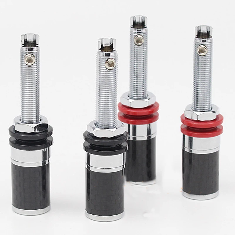Terminales de pareja de fibra de carbono chapados en rodio de alta gama, 4 Uds., conector rojo y negro, amplificador HiFi, Terminal de encuadernación de altavoz