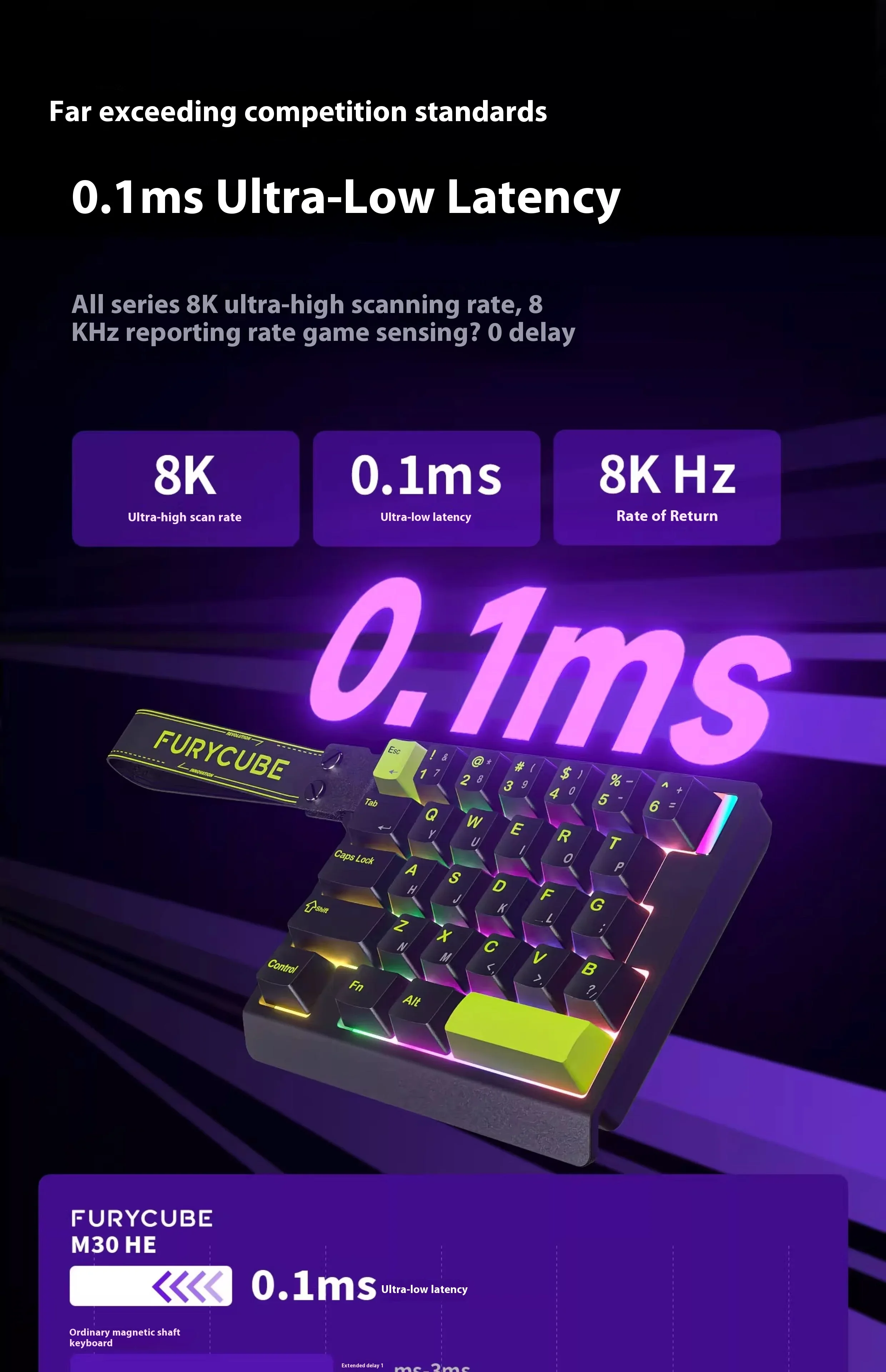 FURYCUBE M30 HE teclado para juegos con efecto Hall Mini teclado RT0.01mm 0,1 ms soporte de latencia SOCD MT Valorant FPS teclado de juego con cable