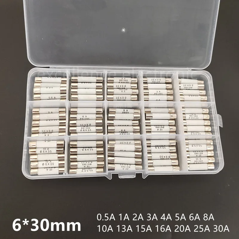 Fusible cerámico de 75mm x 30mm, kit surtido de fusibles de 6mm x 30mm, 0.5A, 1A, 2A, 3A, 4A, 5A, 6A, 8A, 10A, 13A, 15A, 16A, 20A, 25A, 30A, tubo de seguro de 6x30mm