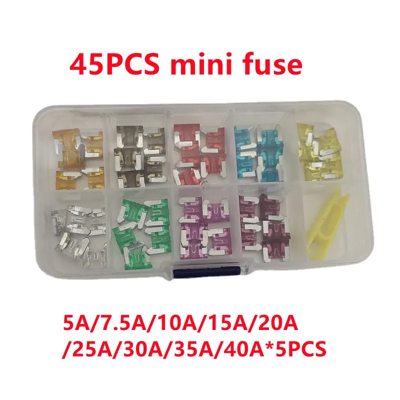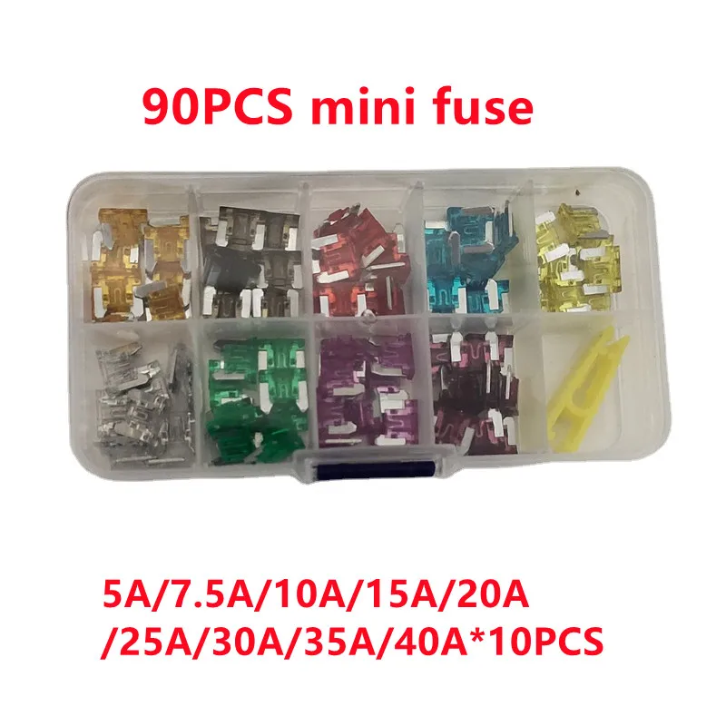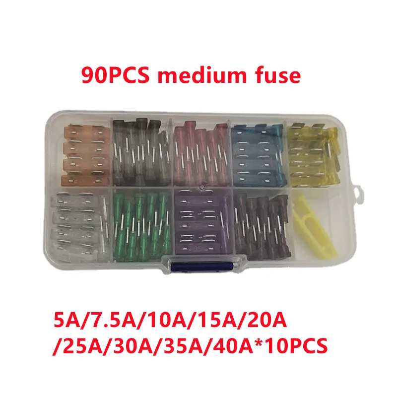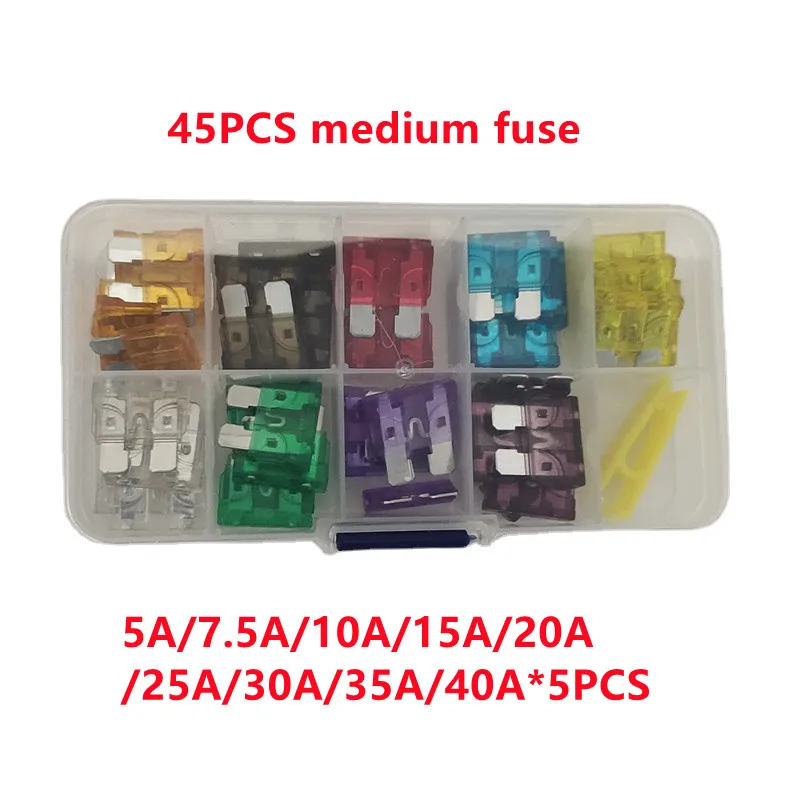 Comprar Fusible de coche de 45/90 piezas, 5-40A, Mini/pequeño/mediano, 32V, surtido de tipo de hoja automotriz, combinación con caja y Clip