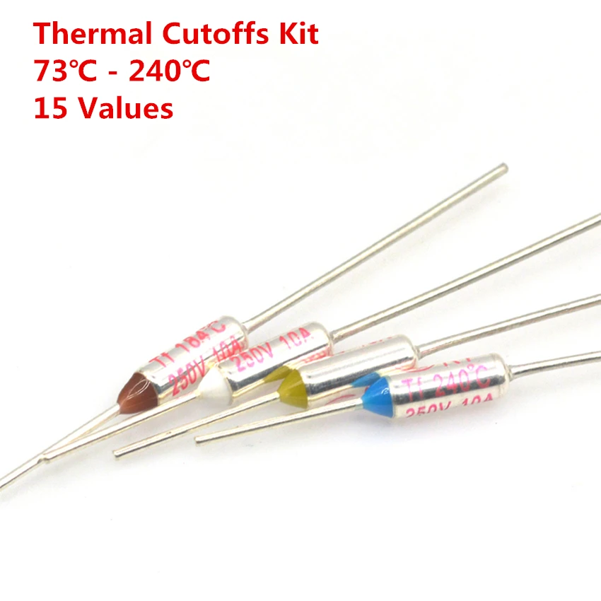 75 Uds fusible térmico 10A 250V cortes térmicos 72C grados-240C grado fusible de temperatura 15 valores cada 5 uds Kit de surtido