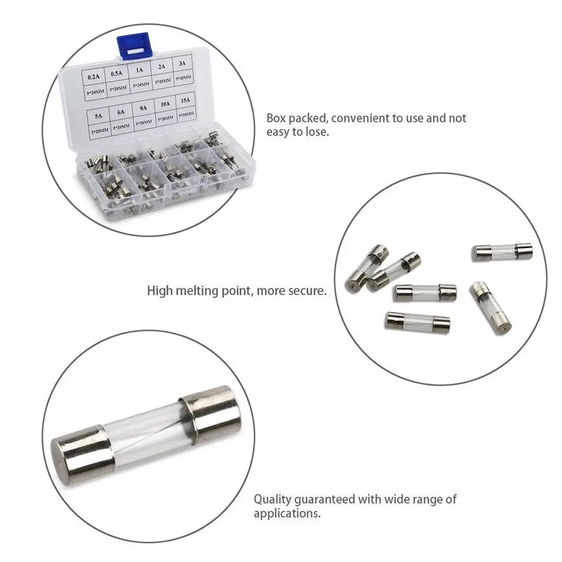 Comprar Fusible de tubo de vidrio de soplado rápido, Kit surtido de fusibles de vidrio de soplado rápido, 5x20mm, 100 Uds.