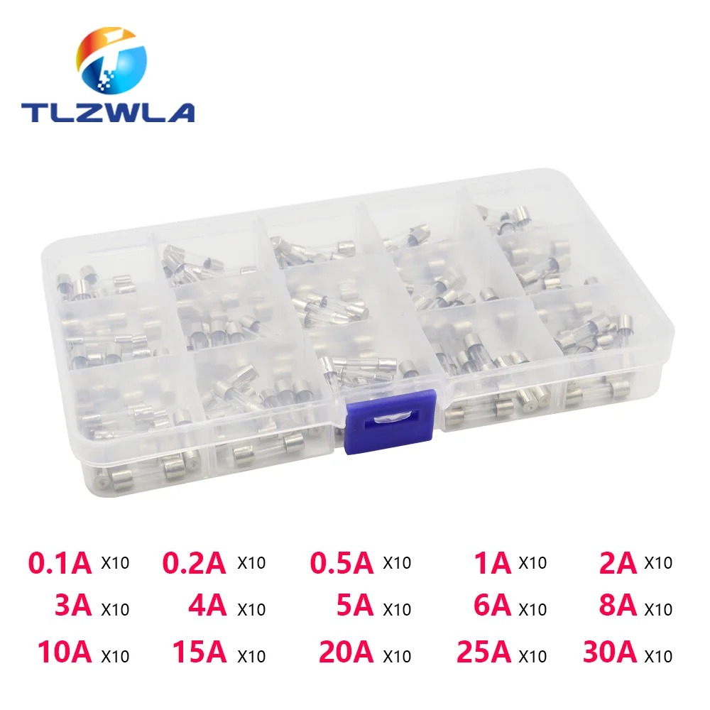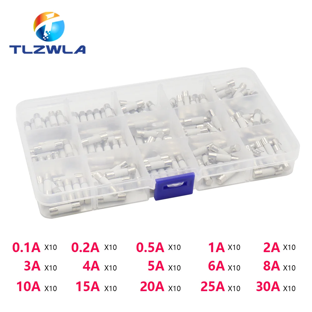 Fusibles de tubo de vidrio de soplado rápido para coche, Kit surtido de fusibles de cerámica de 5x20 con caja, 150 piezas, 5x20mm, 0,1a-30A, 15 tipos