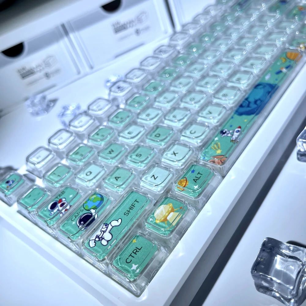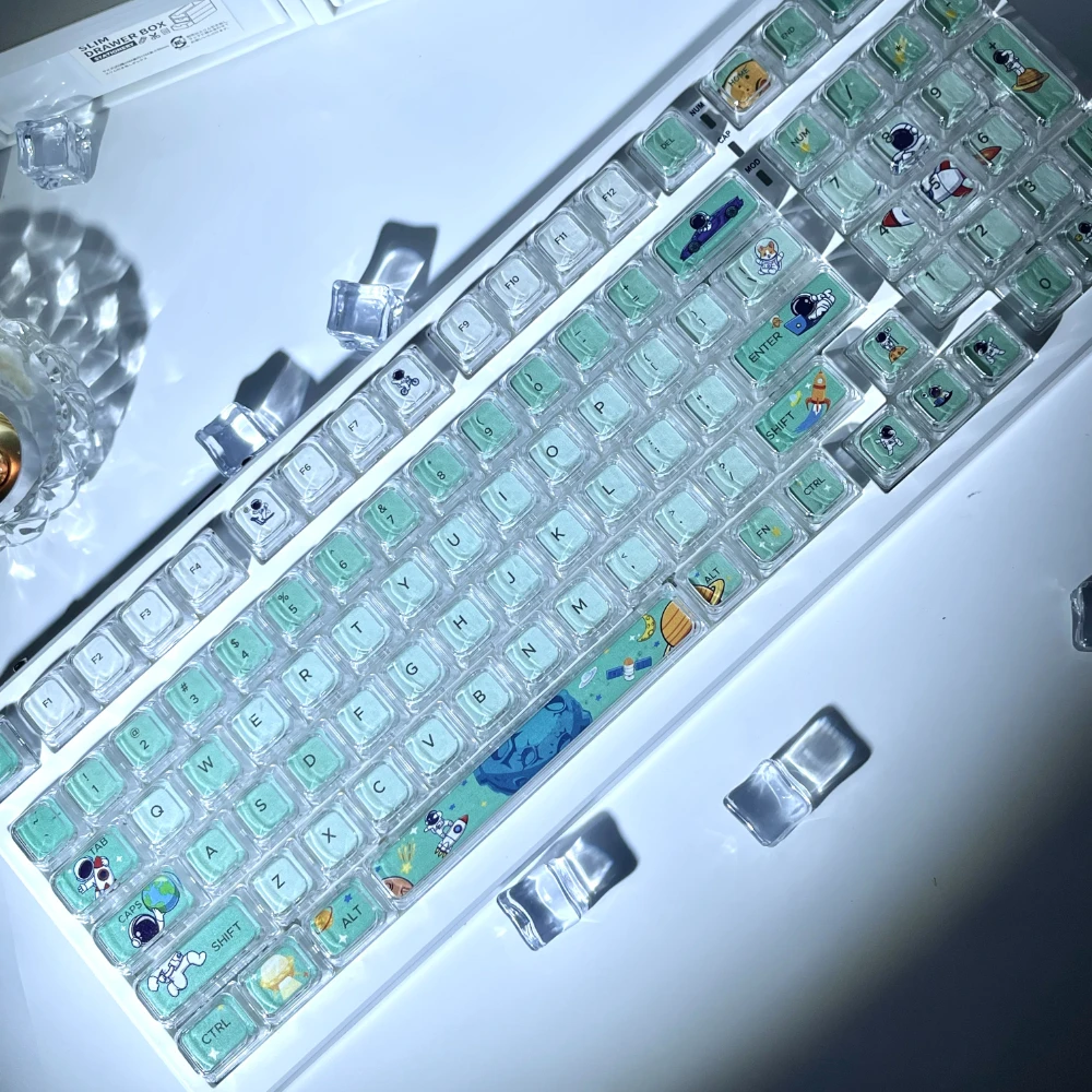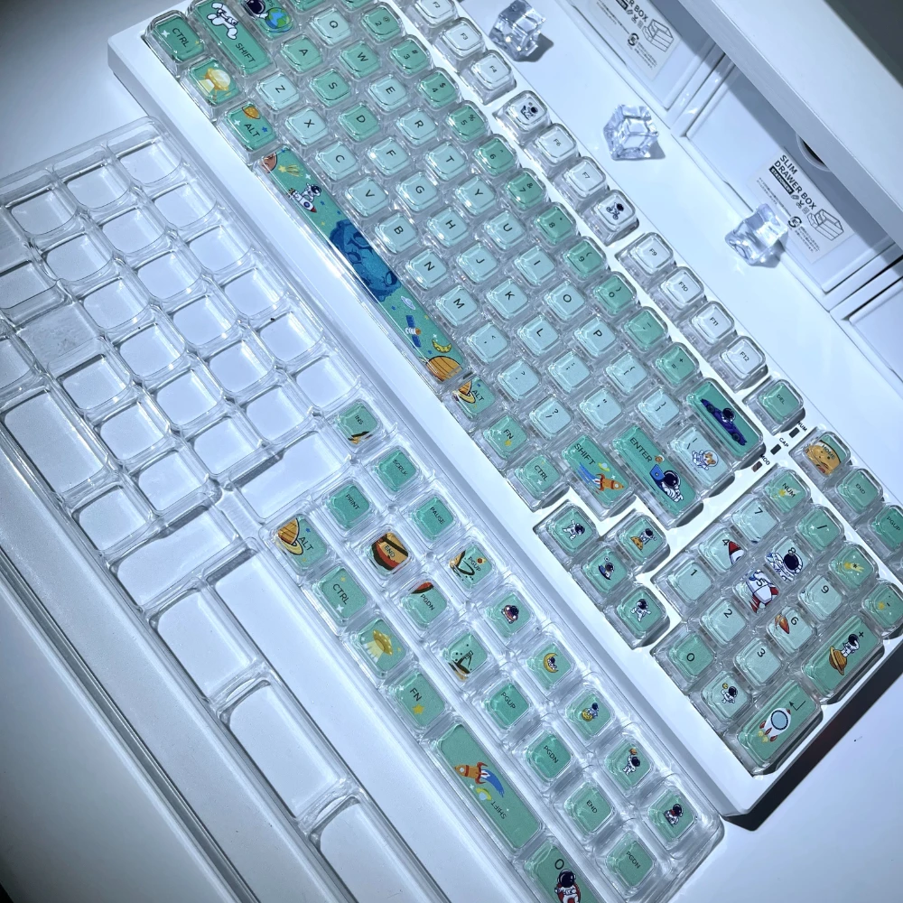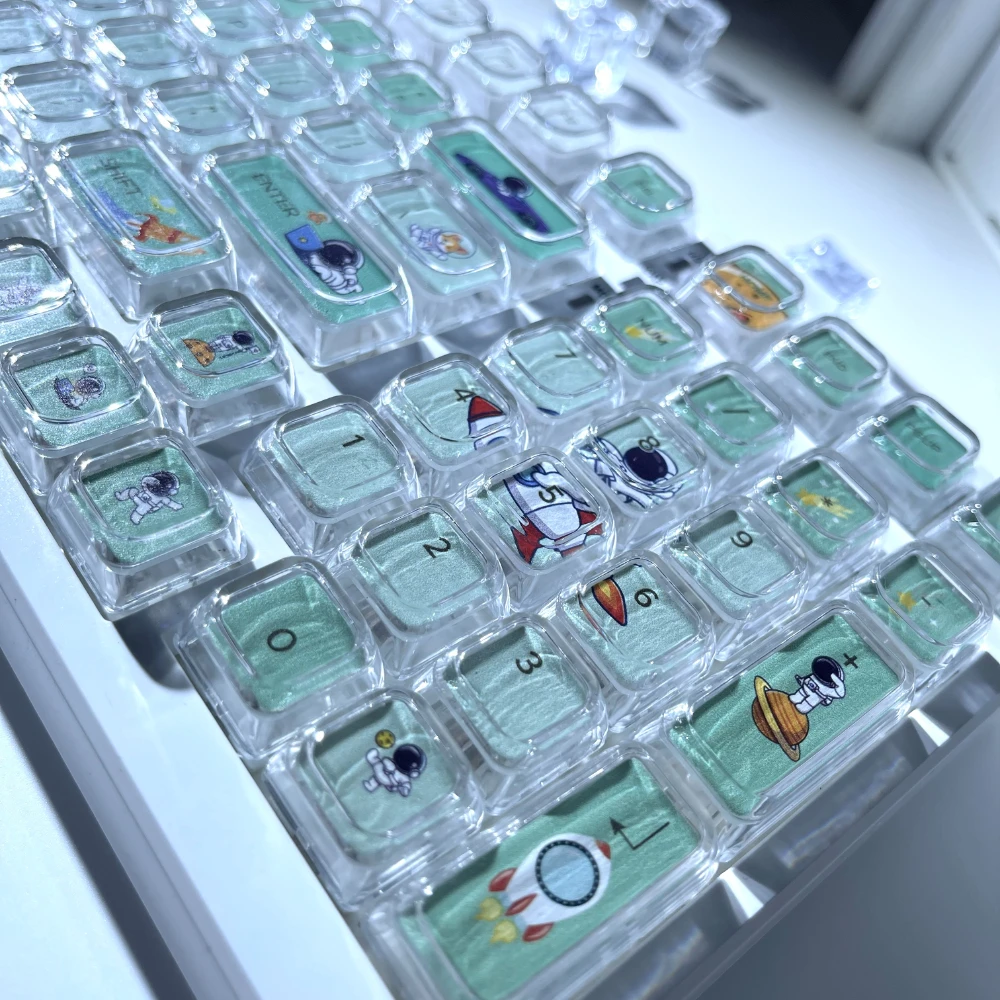 Comprar Future Era-Tapa de tecla de cristal transparente verde, perfil XDA, 122 teclas, Material de PC, lindo astronauta, teclas de teclado mecánico DIY