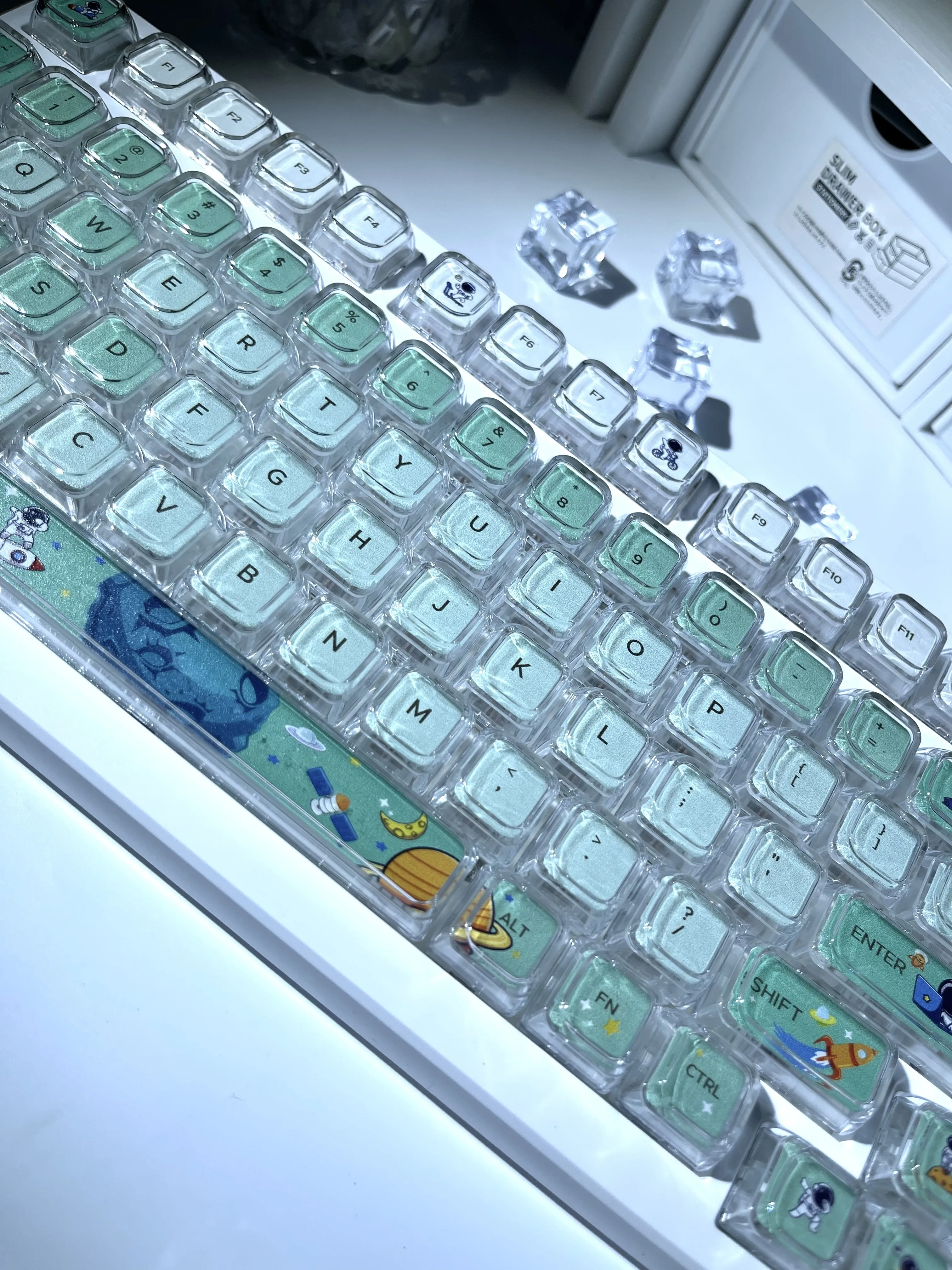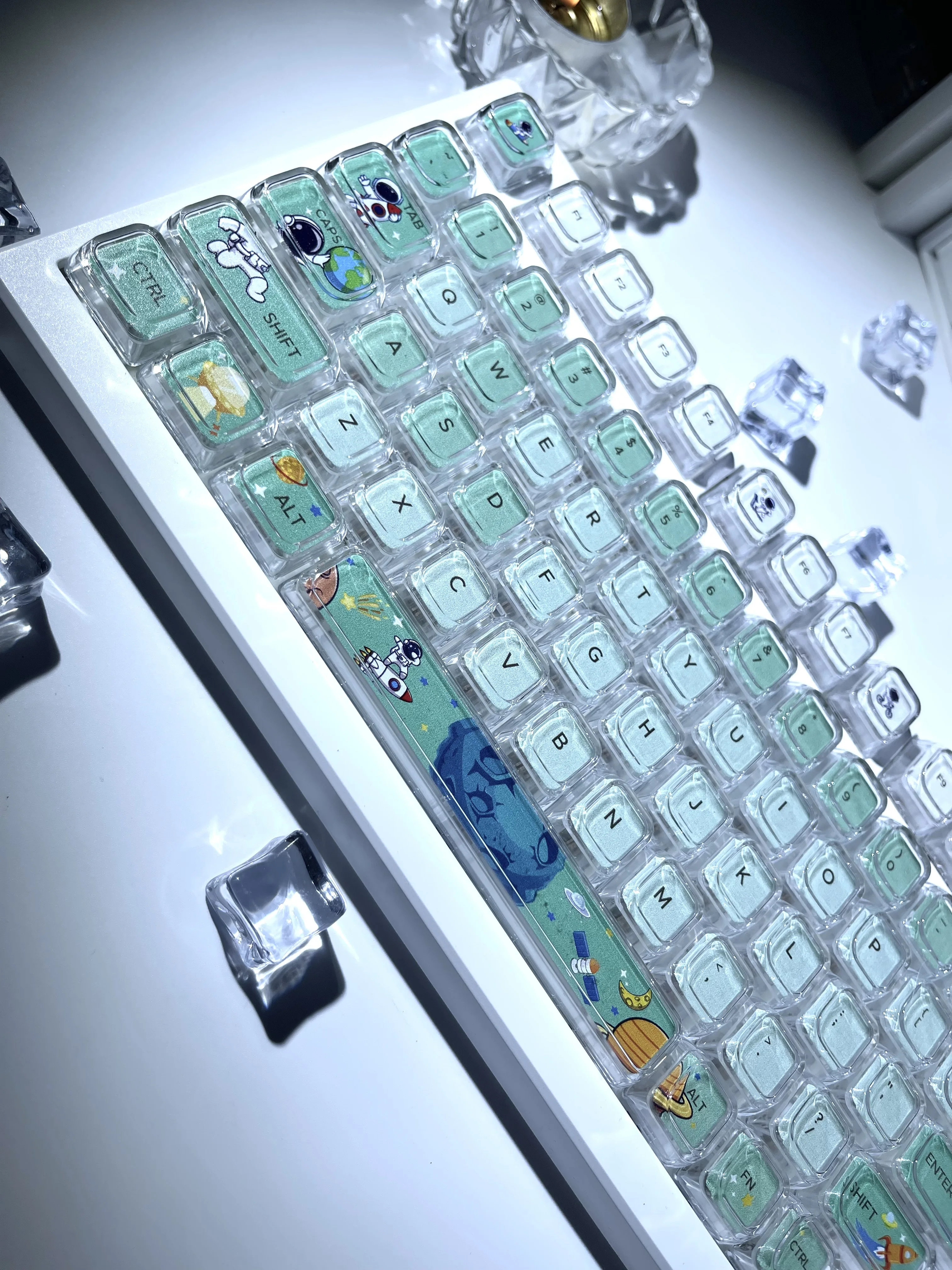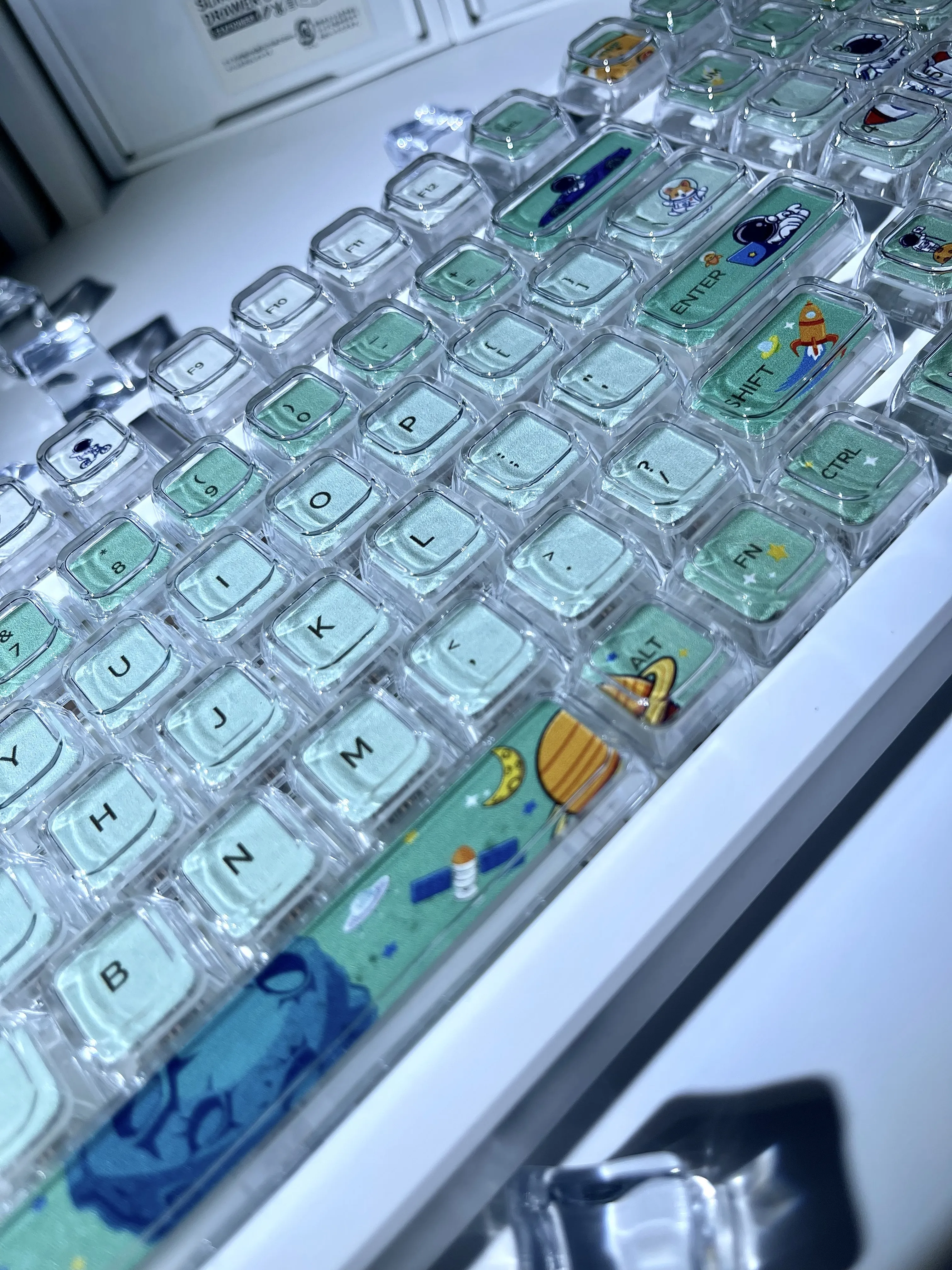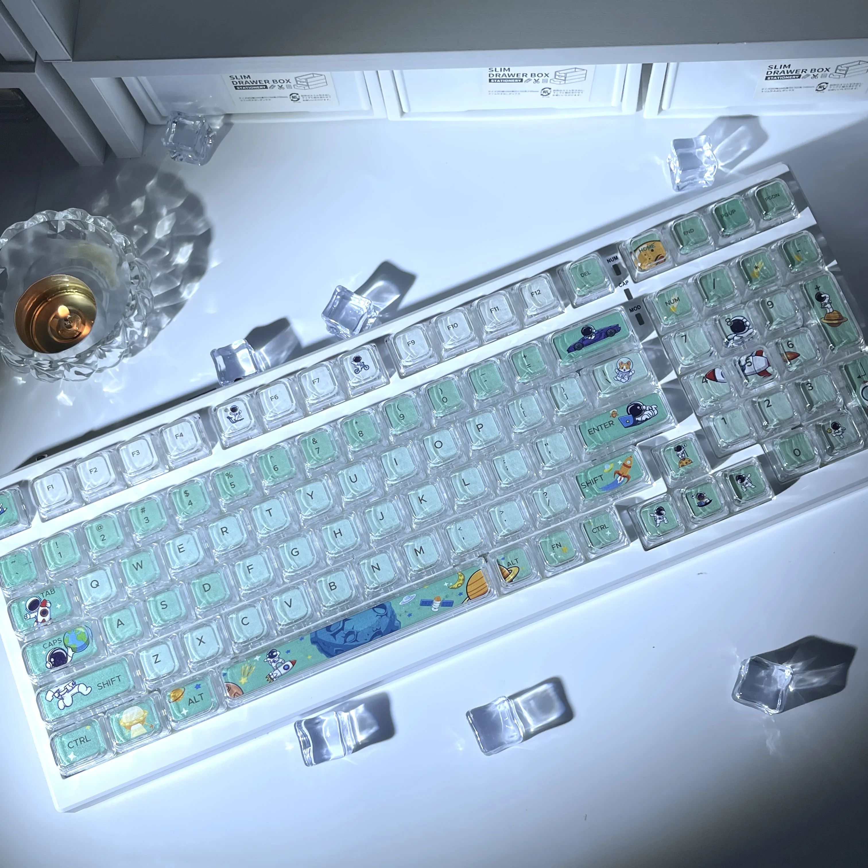 Comprar Future Era-Tapa de tecla de cristal transparente verde, perfil XDA, 122 teclas, Material de PC, lindo astronauta, teclas de teclado mecánico DIY