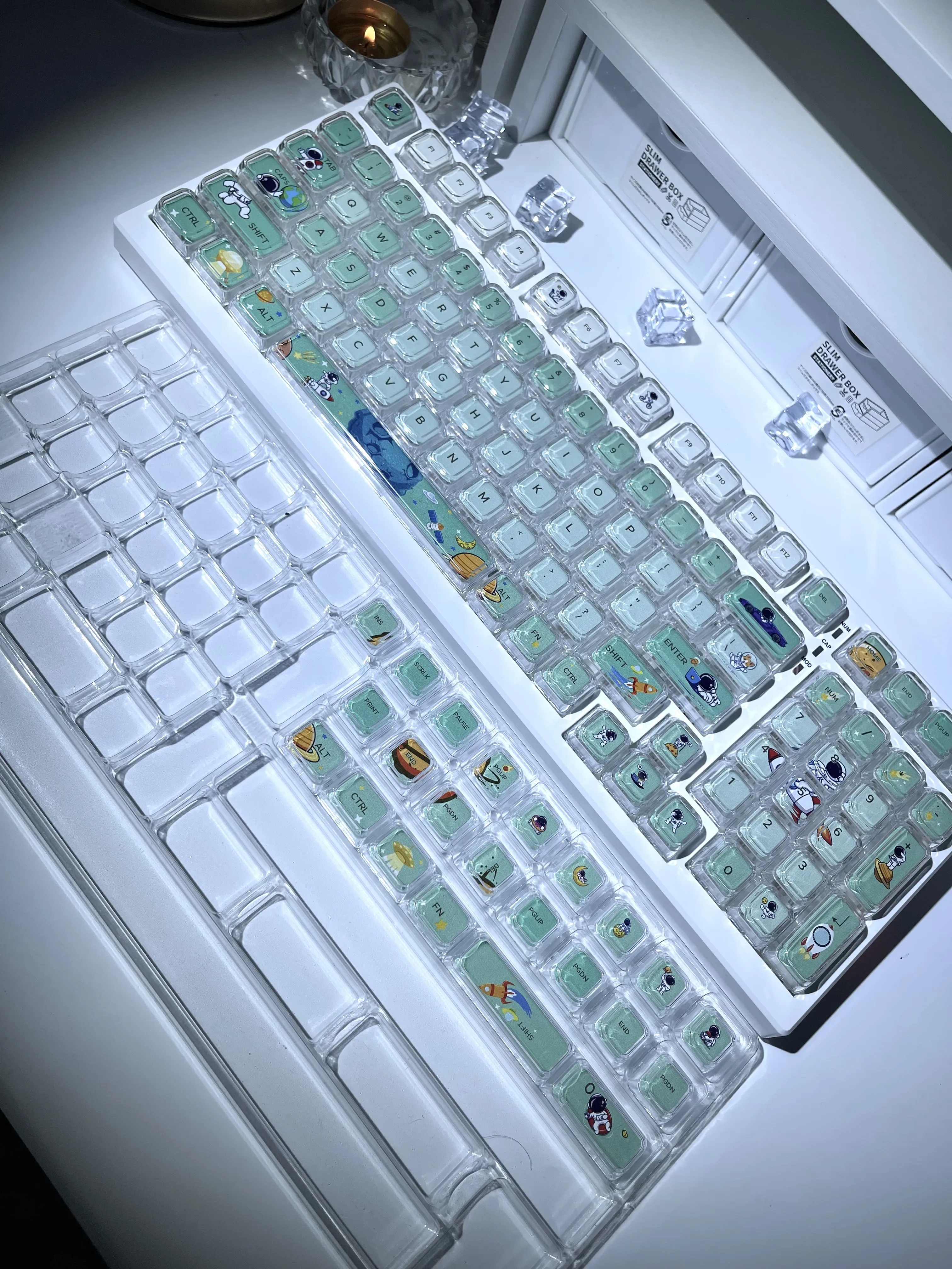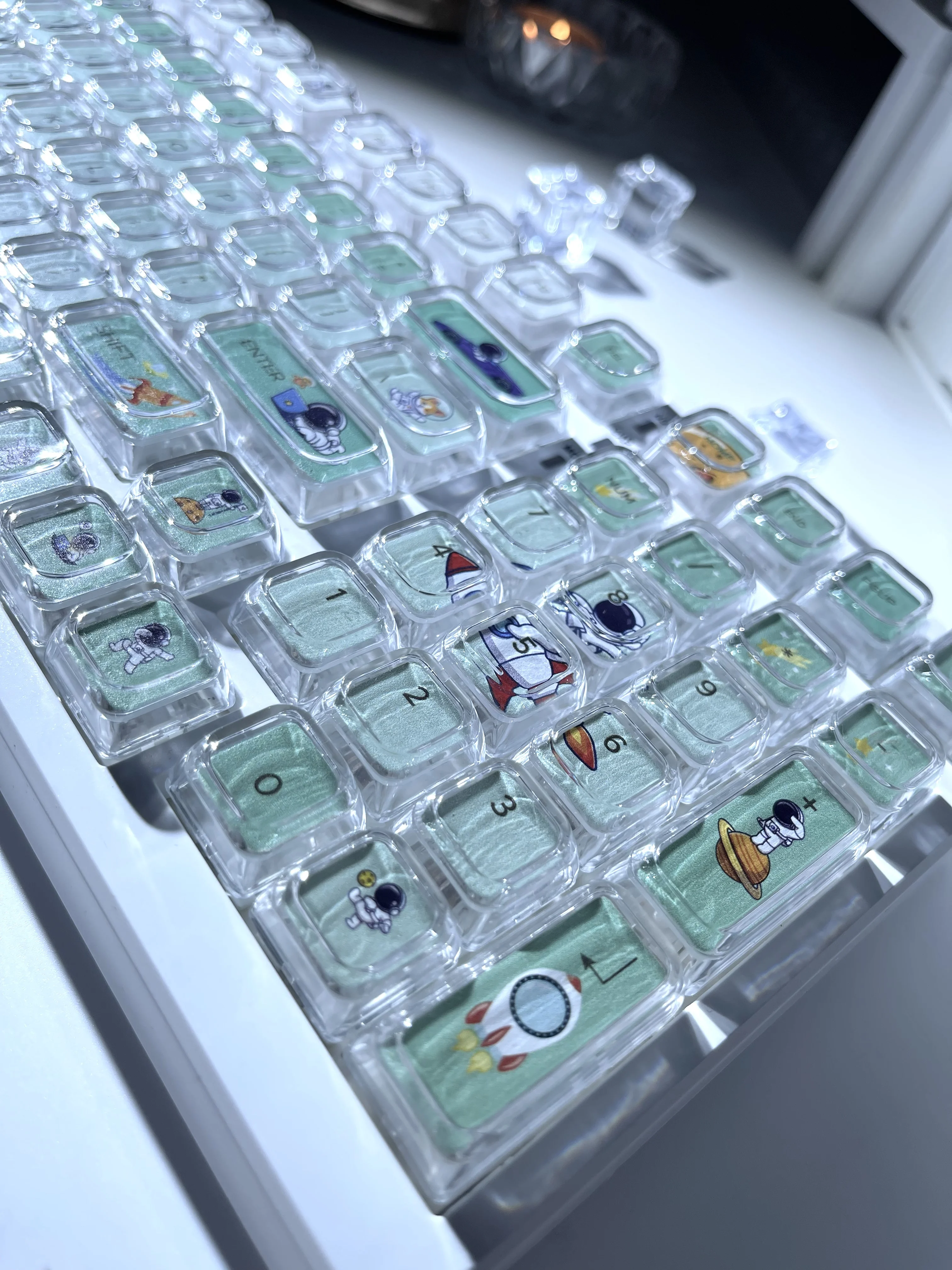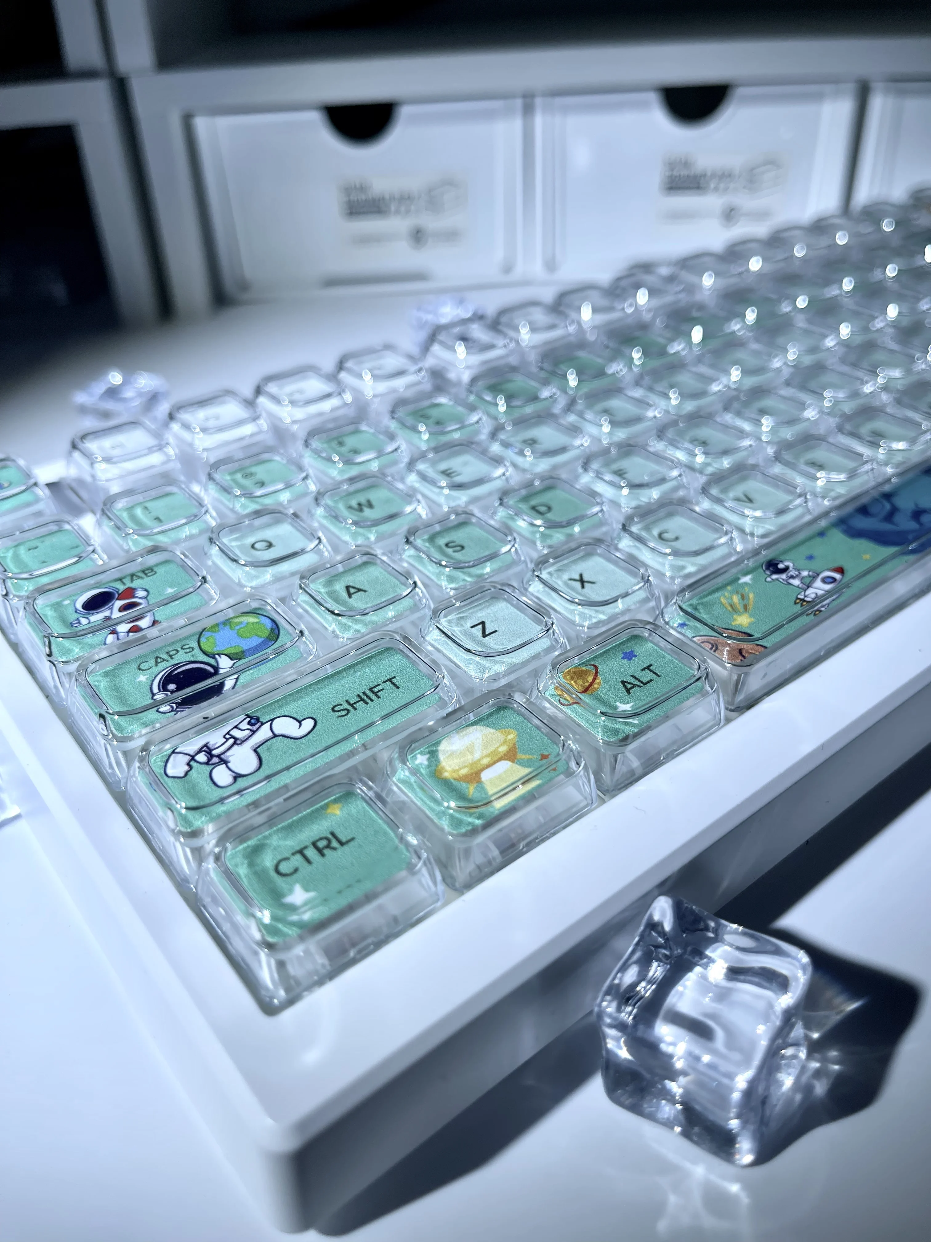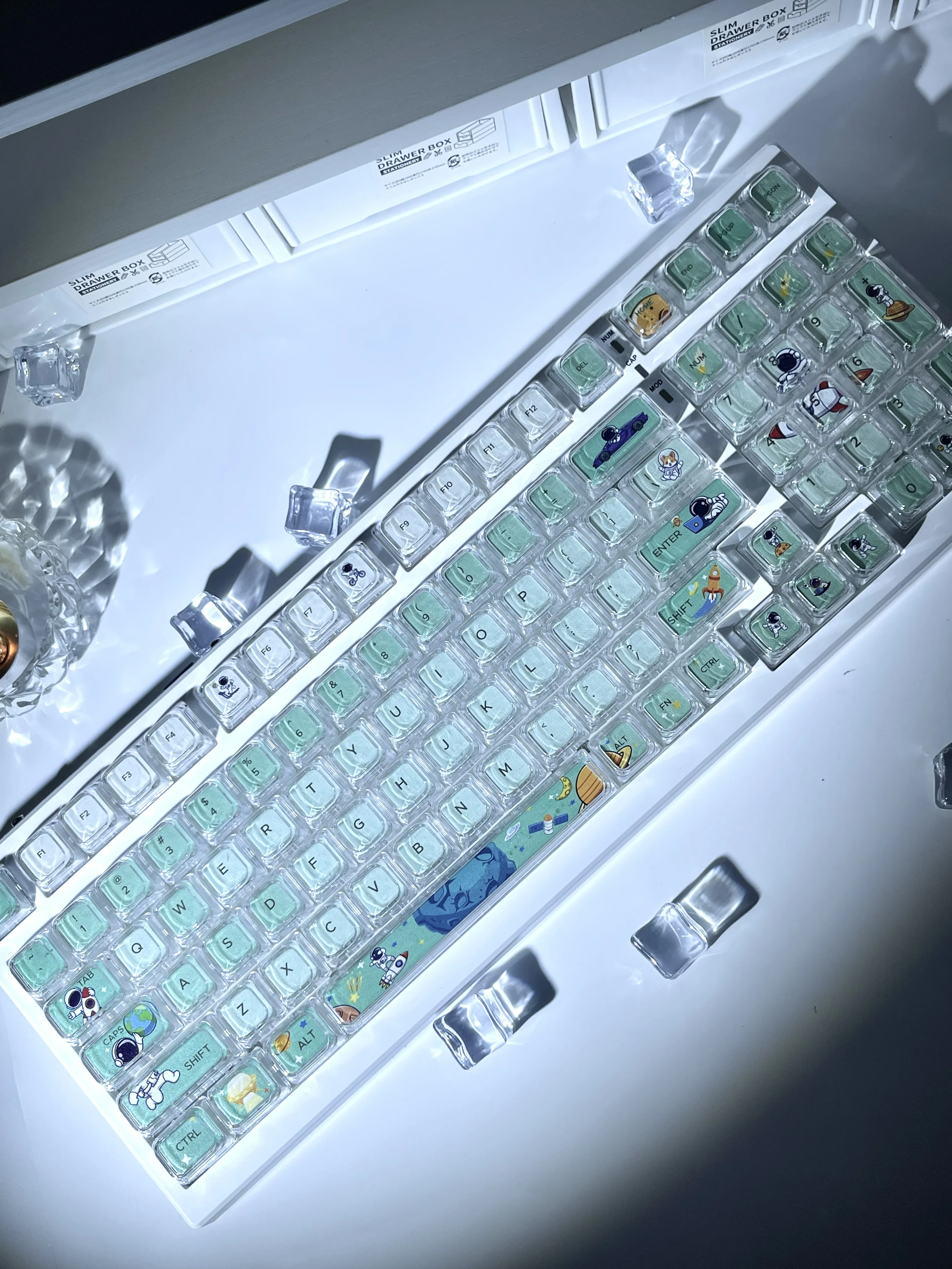 Comprar Future Era-Tapa de tecla de cristal transparente verde, perfil XDA, 122 teclas, Material de PC, lindo astronauta, teclas de teclado mecánico DIY