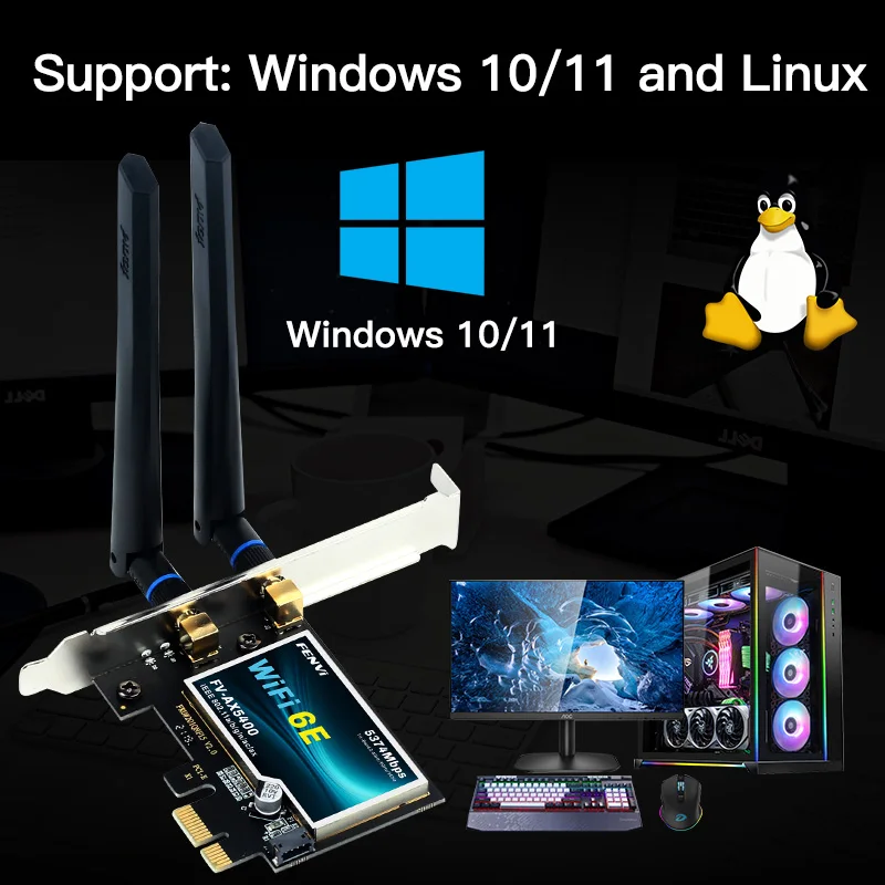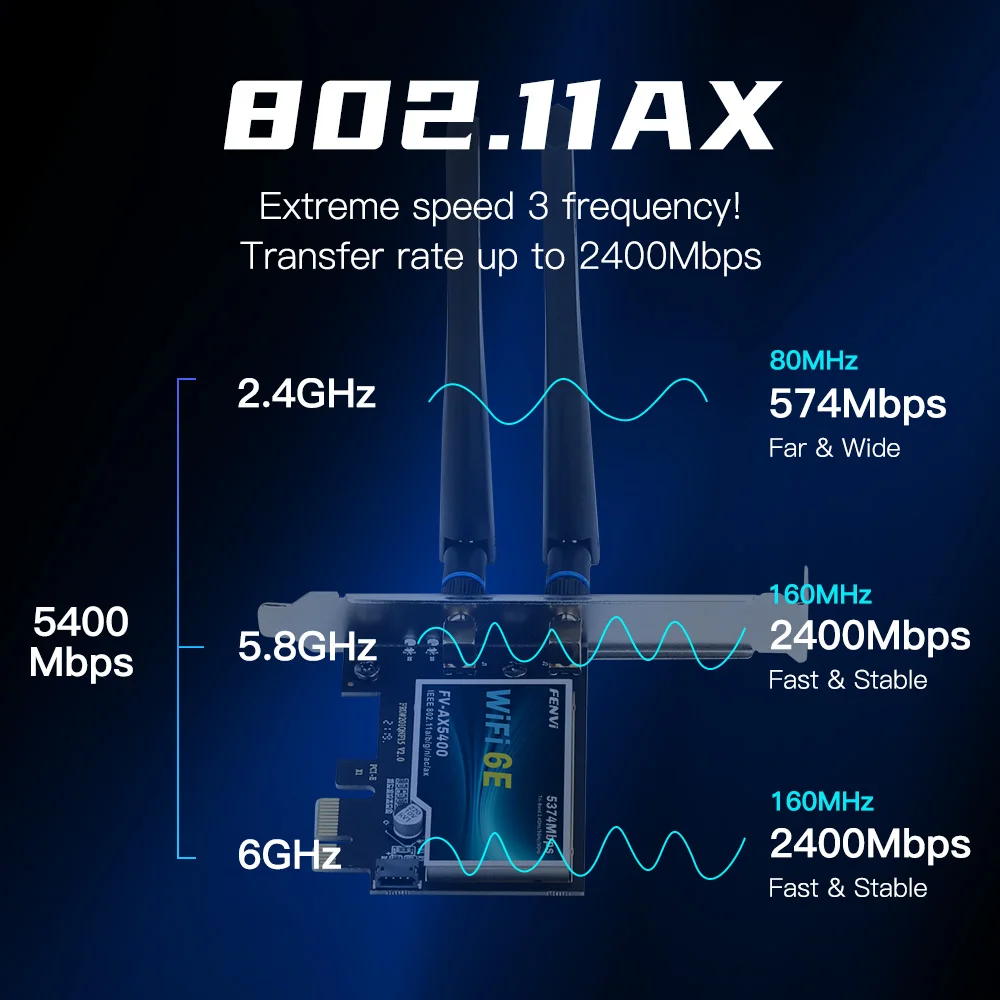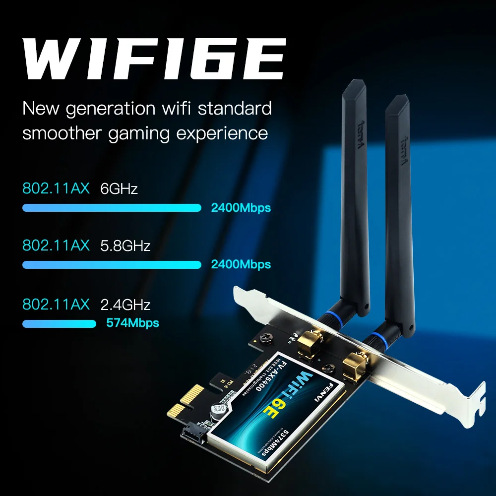 Comprar Fvi-adaptador inalámbrico WiFi 6E AX210 PCIe, tarjeta de red para PC Win 5,3, Bluetooth 2,4, triple banda, 10/11G/5G/6Ghz, 802.11AX