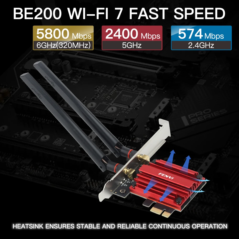 Comprar Fvi-adaptador inalámbrico Wifi 7 pcie be200, Bluetooth 5,4, triple banda, 2,4G/5G/6Ghz, 8774Mbps, Windows 10/11, 64 bits, mejor que wifi 6E