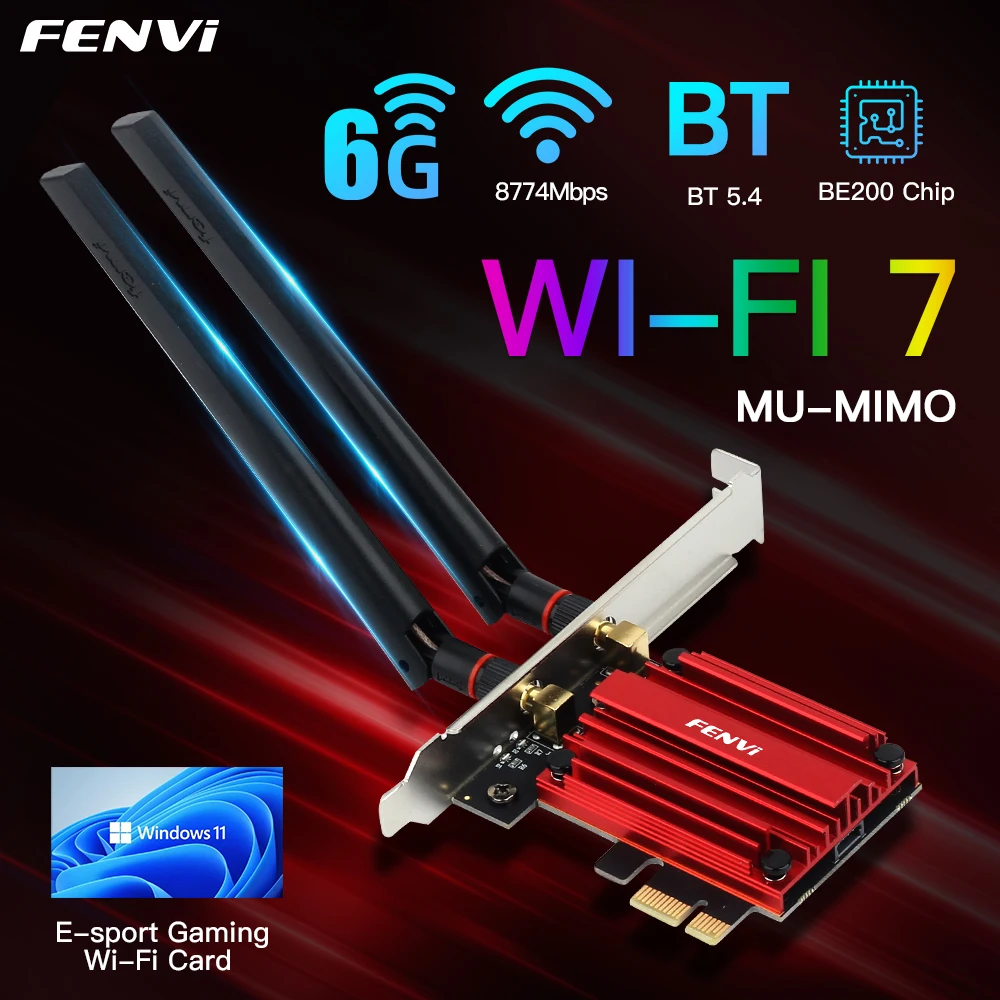 Comprar Fvi-adaptador inalámbrico Wifi 7 pcie be200, Bluetooth 5,4, triple banda, 2,4G/5G/6Ghz, 8774Mbps, Windows 10/11, 64 bits, mejor que wifi 6E