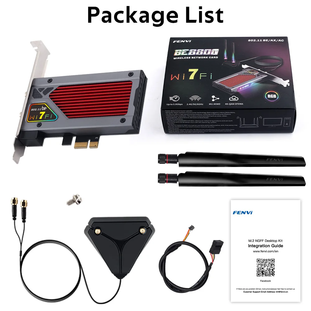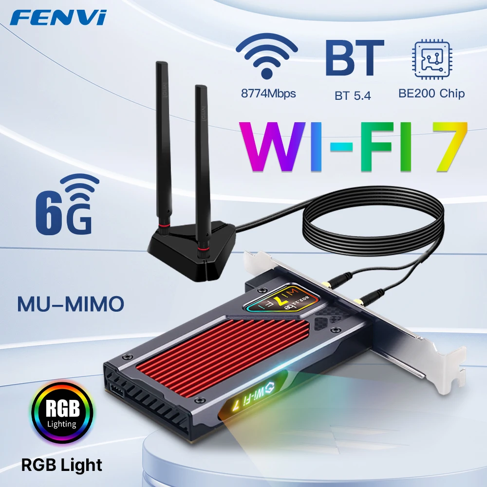 Comprar Fvi-adaptador Pcie inalámbrico WiFi 7, Bluetooth 5,4, 802.11be, luz RGB, tarjeta de red BE200, triple banda, 6G/5G/2,4G, Win 10/11, para PC