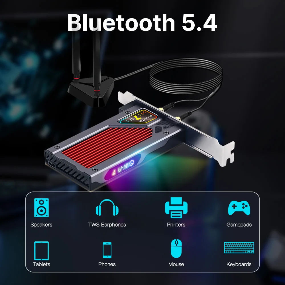 Adaptador inalámbrico PCI Express con Bluetooth 5,4, WiFi 7, 1, 2, 2