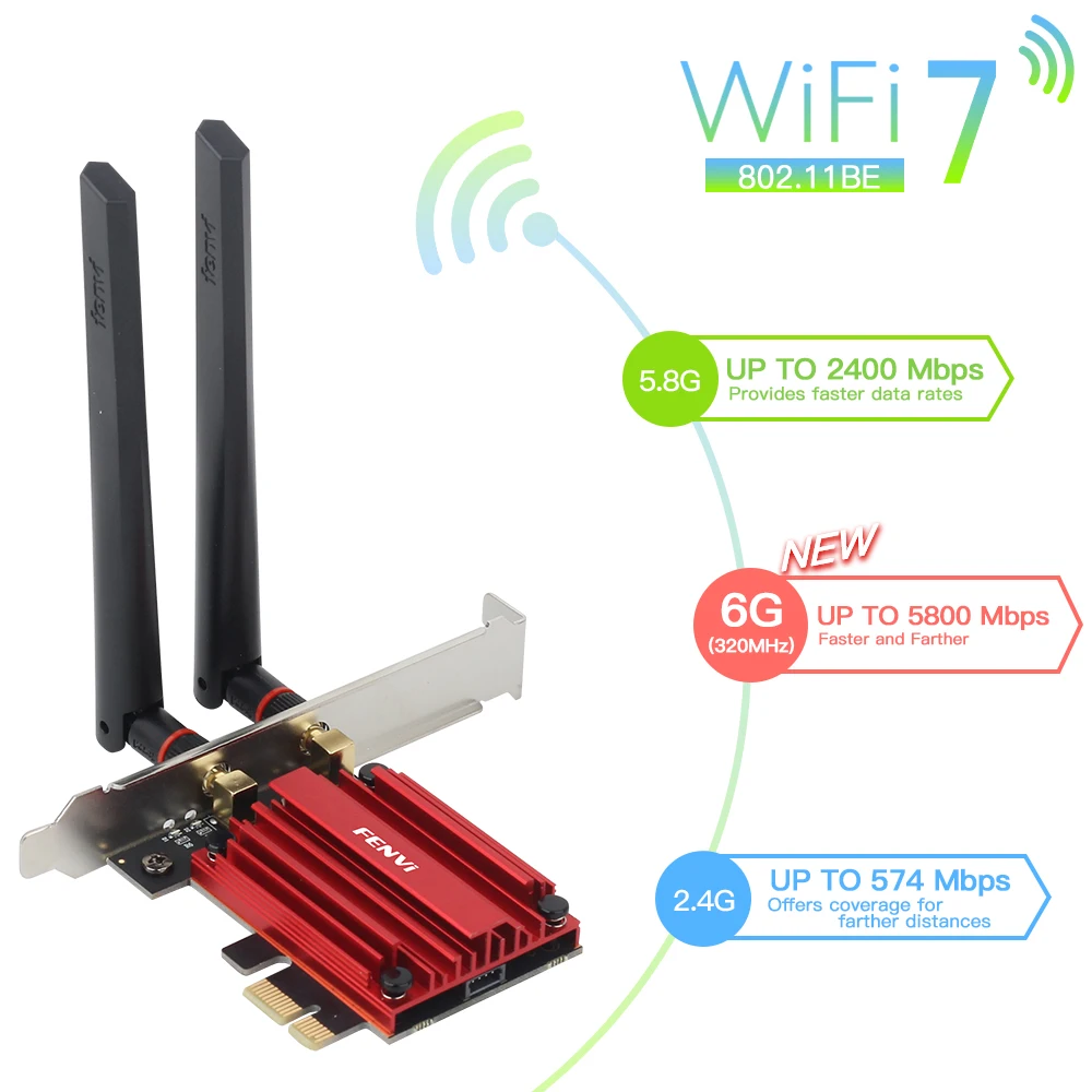 FENVI Wi-Fi 7 PCI-E Adaptador Wi-Fi BE200 BT 5,4 Tribanda 2,4G/5G/6Ghz 802.11be Para Windows 10/11 PC Escritorio 64Bit