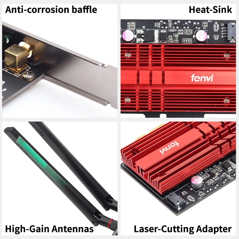 FENVI 3000Mbps Wifi 6 Intel AX200 PCIE tarjeta Wi-fi 802.11ax 2,4G/5Ghz para Bluetooth 5,2 banda Dual escritorio PCIe WiFi adaptador PCI-E inalámbrico