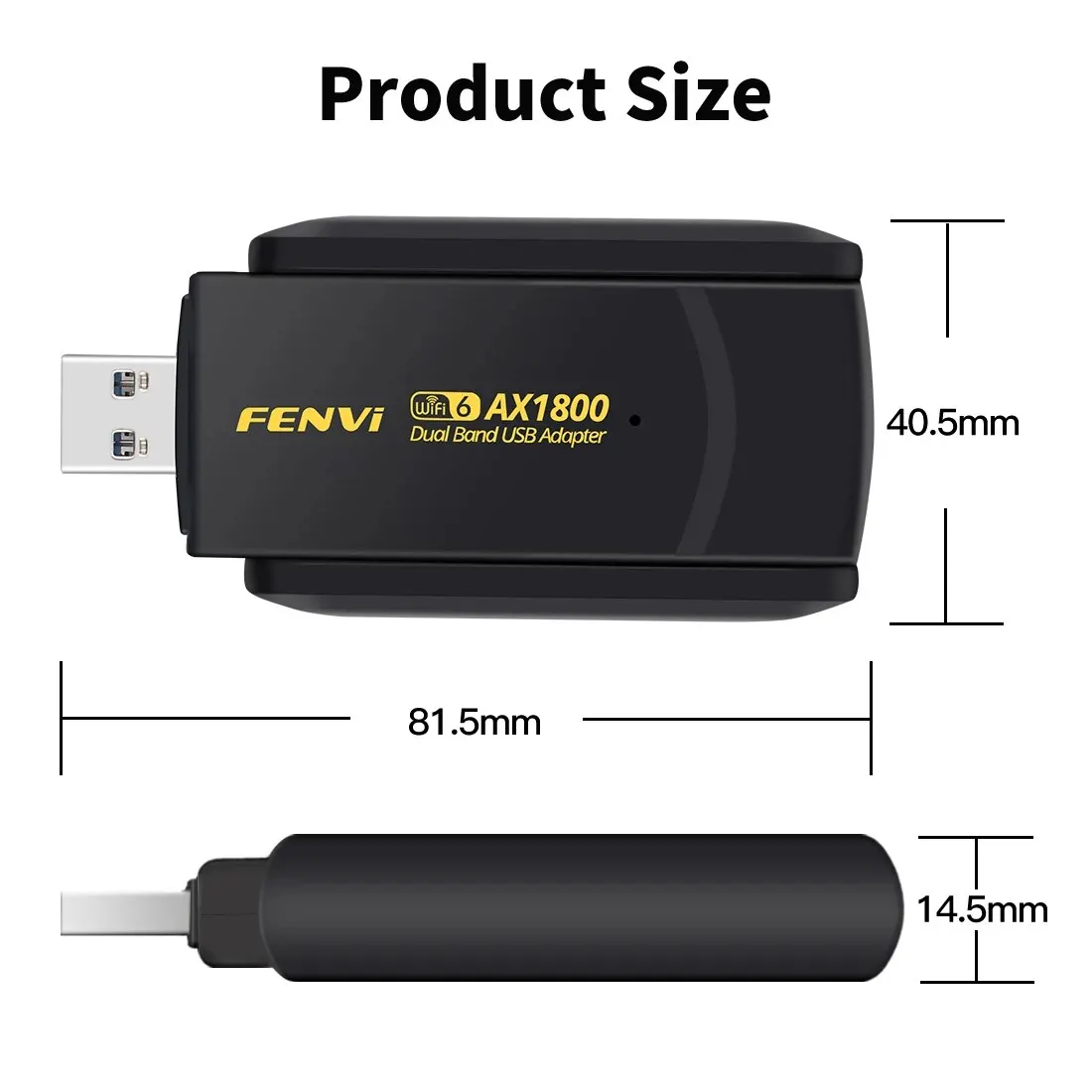 FENVI 1800Mbps WiFi 6 Adaptador USB de Doble Banda 2,4G/5Ghz Inalámbrico WiFi Receptor USB 3,0 Dongle Tarjeta de Red Para PC Portátil Win 10/11