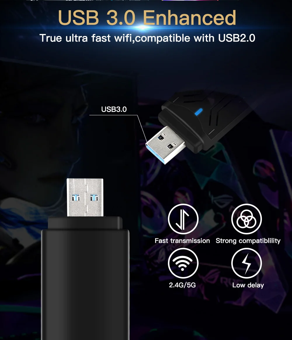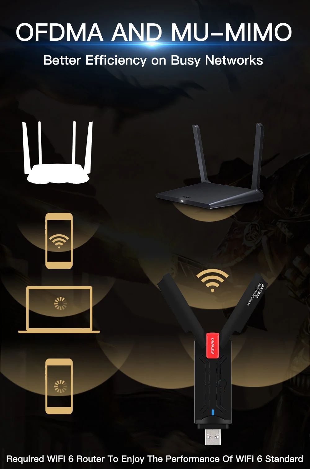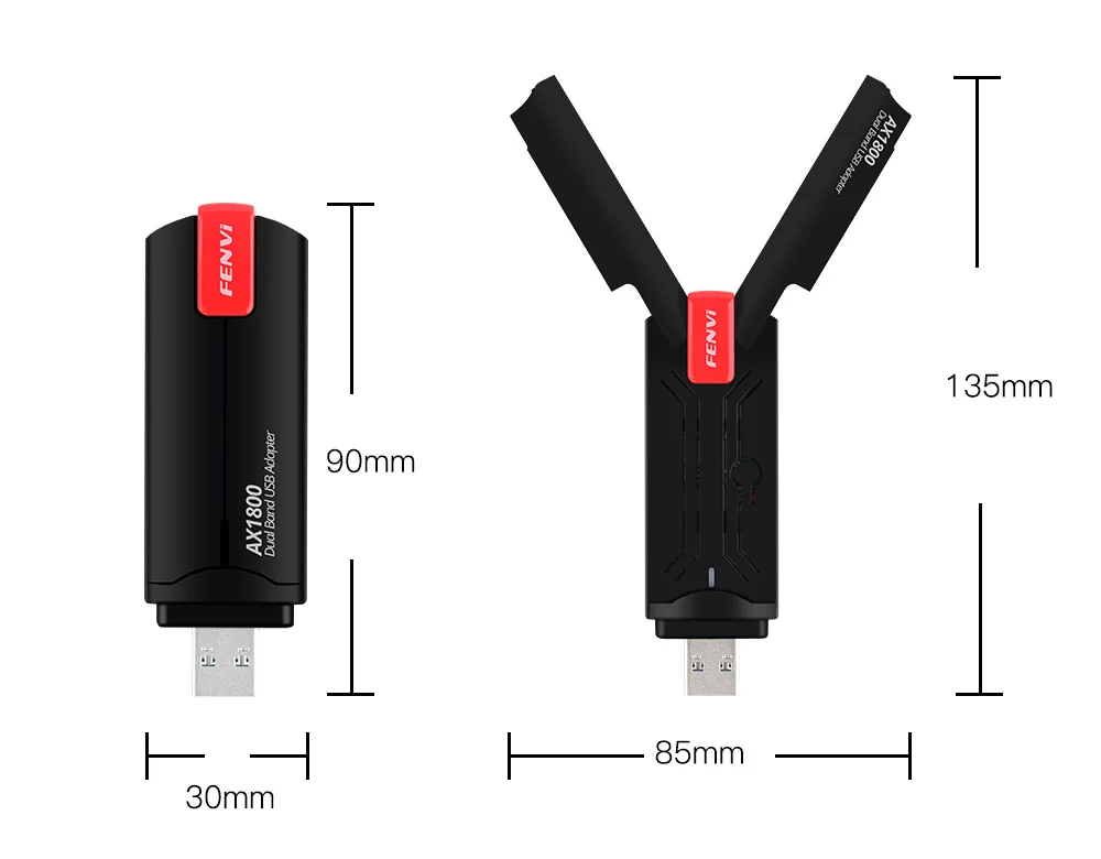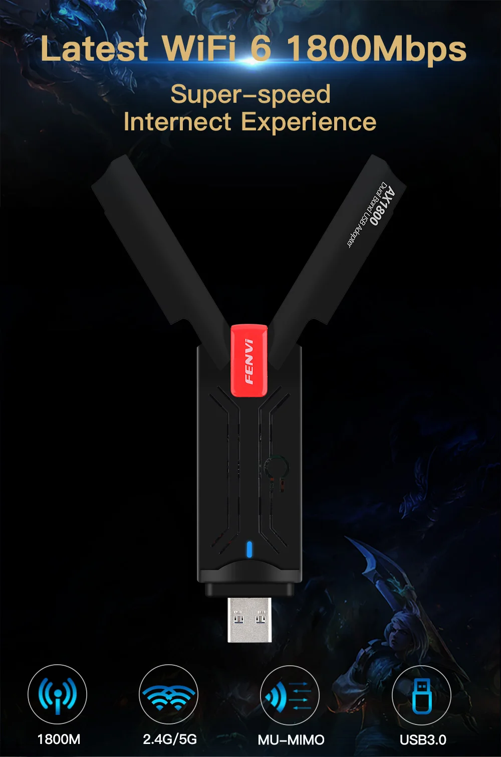 Fenvi WiFi USB adaptador de doble banda AX1800 2,4G/5GHz Wireless Dongle Wi-Fi tarjeta de red USB 3,0