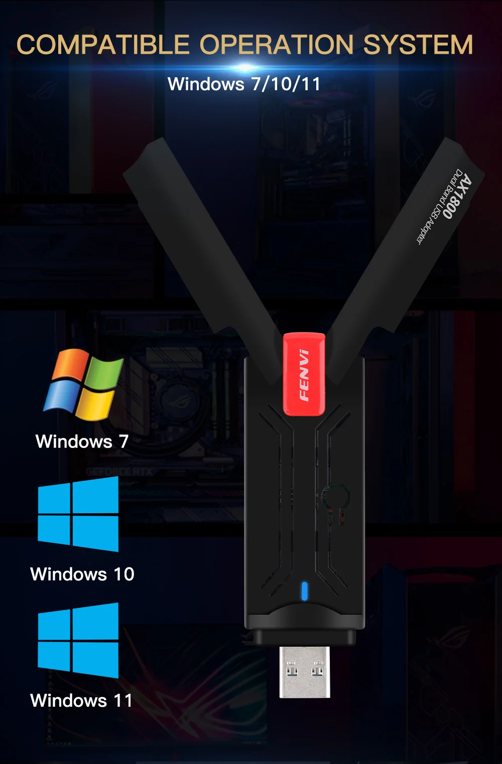 Comprar Fvi-adaptador WiFi 6 USB de doble banda AX1800 2,4G/5GHz, Dongle inalámbrico, tarjeta de red USB 3,0, adaptador WiFi6 para Windows 7/10/11
