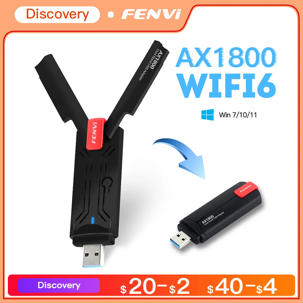 Comprar Fvi-adaptador WiFi 6 USB de doble banda AX1800 2,4G/5GHz, Dongle inalámbrico, tarjeta de red USB 3,0, adaptador WiFi6 para Windows 7/10/11