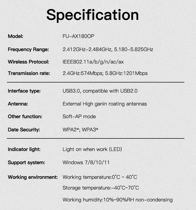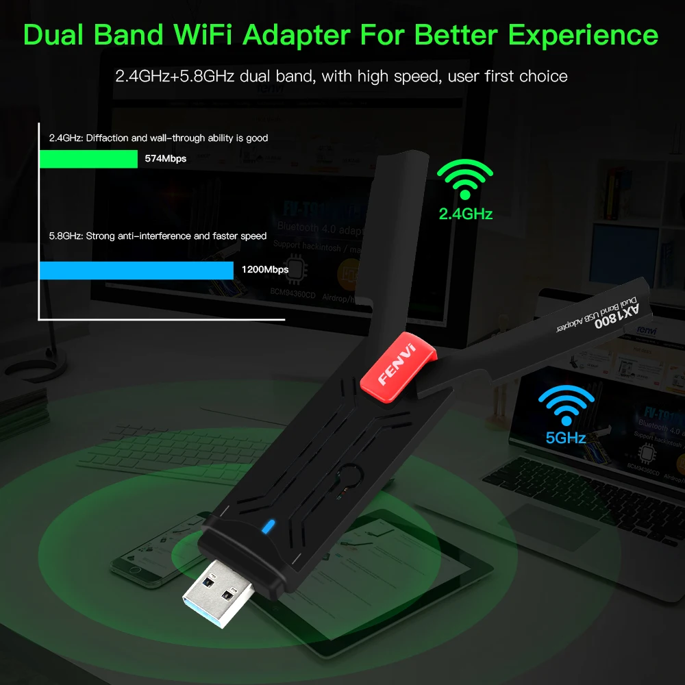 Comprar Fvi-adaptador WiFi6 USB 3,0, receptor Dongle Wifi de 1800Mbps, 5g, banda Dual, tarjeta inalámbrica de 2,4G/5GHz para Windows10/11, SIN controlador