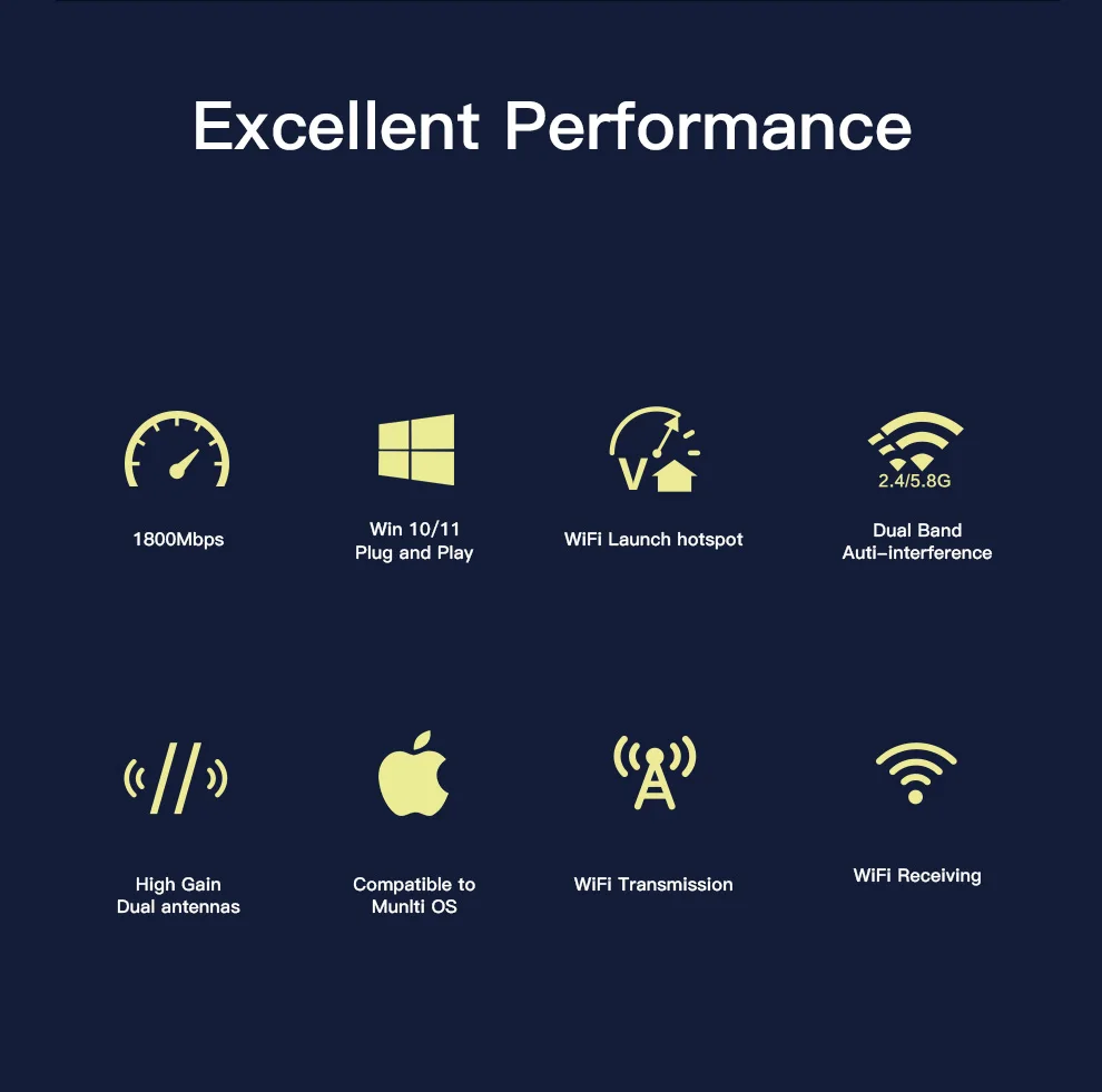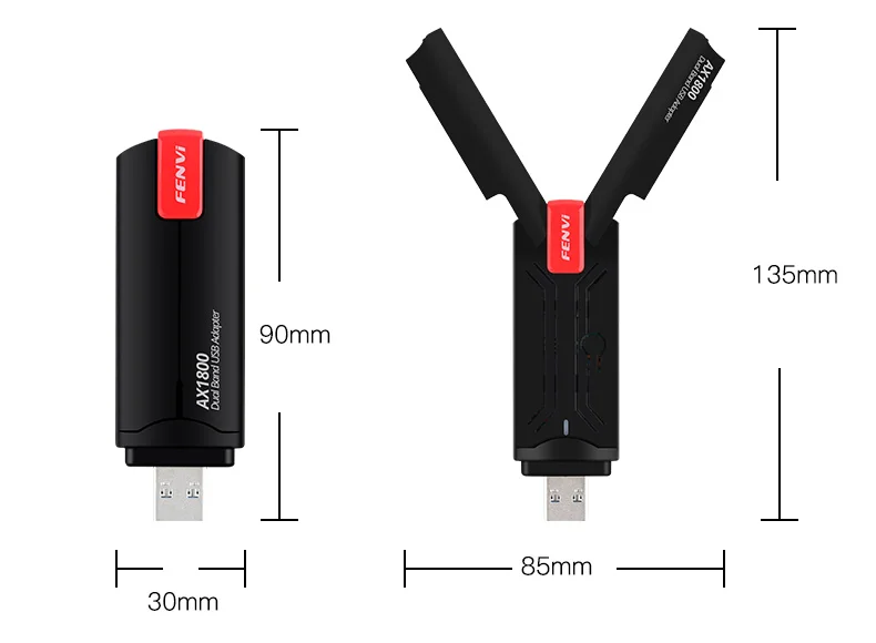 Comprar Fvi-adaptador WiFi6 USB 3,0, receptor Dongle Wifi de 1800Mbps, 5g, banda Dual, tarjeta inalámbrica de 2,4G/5GHz para Windows10/11, SIN controlador