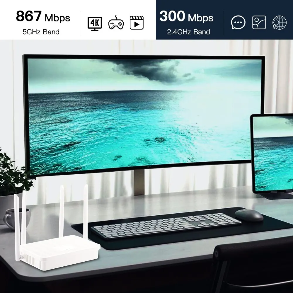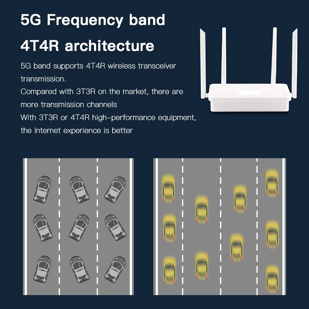 • Soporte de frecuencia de banda dual:Este enrutador admite la frecuencia de doble banda de 2,4G y 5G, lo que garantiza un rendimiento de red inalámbrica constante y confiable en diferentes entornos.