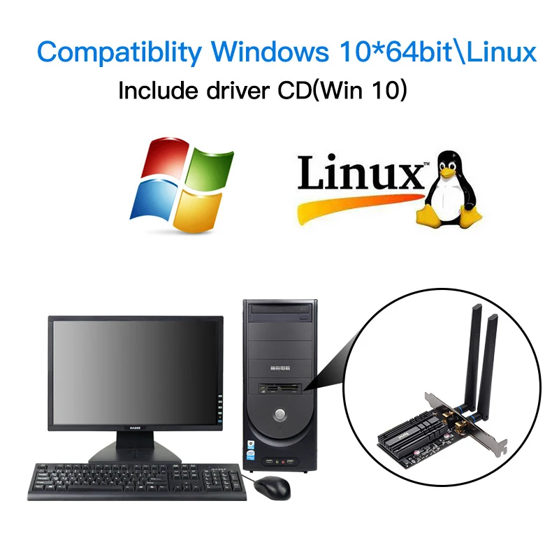 Actualización instantánea a Wifi 802.11 ac/ax en su PC de sobremesa. No más cables Ethernet desordenados;.