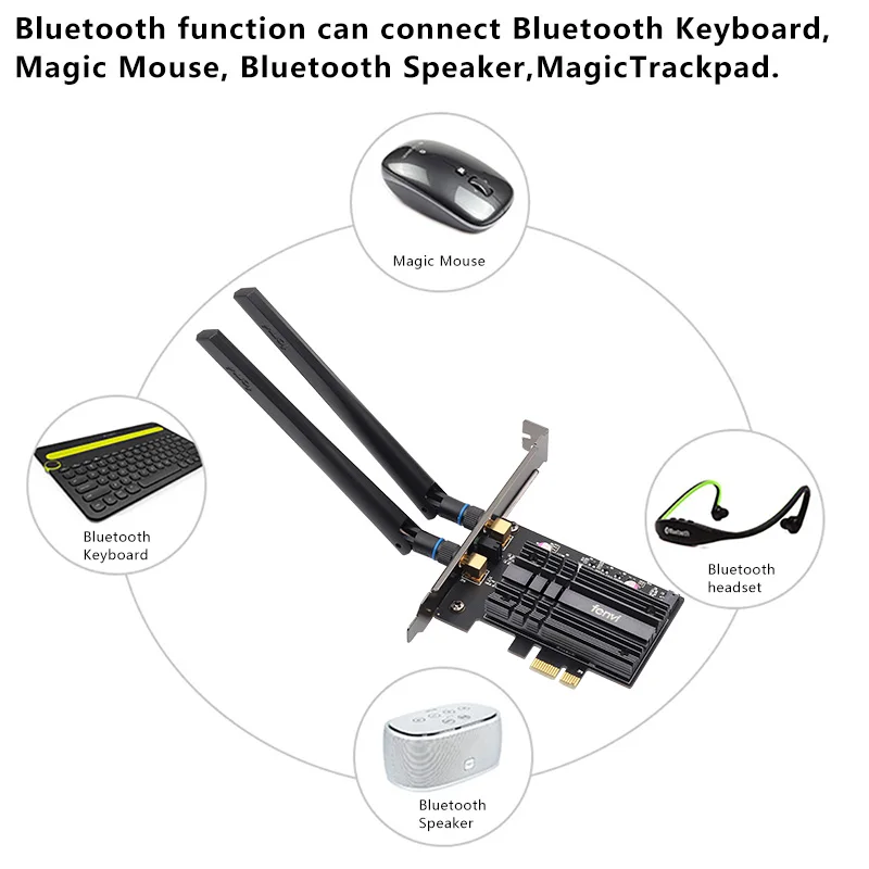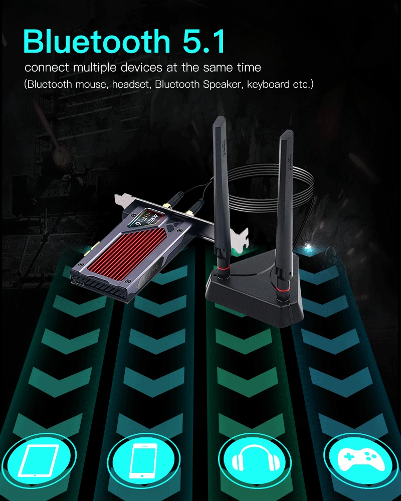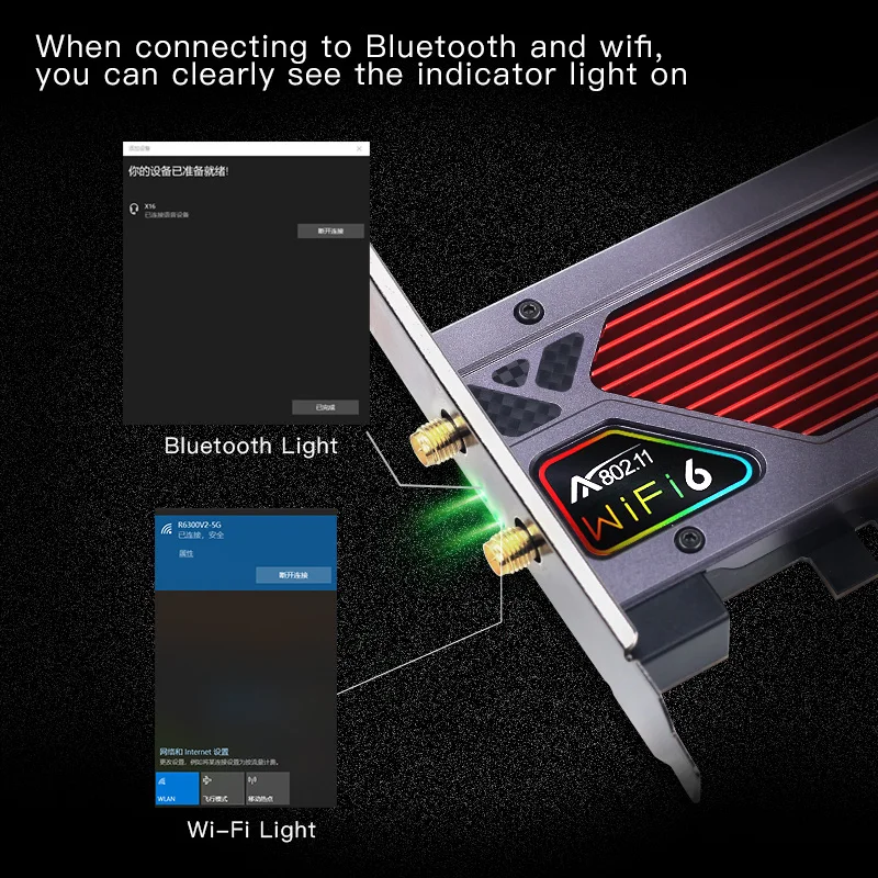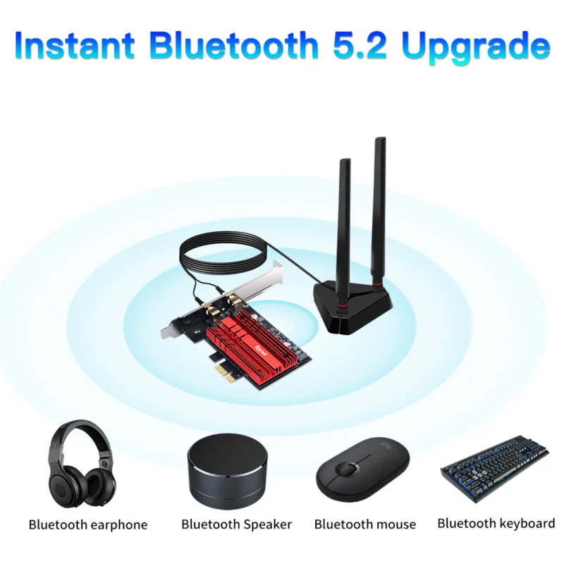 El adaptador es compatible con Bluetooth 5,2 y 802.11ac/AX Wi-Fi 6,