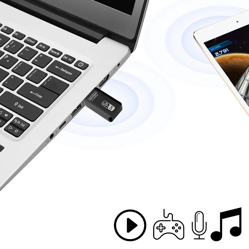 Simplemente conecte el adaptador a un puerto USB disponible y conéctese a una red inalámbrica para acceder a una conexión a Internet segura y de alta velocidad: 2,4 GHz (200Mbps) o 5GHz (hasta 433Mbps).