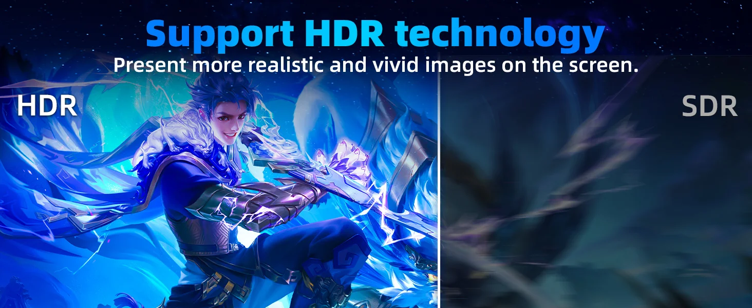 El monitor 2K de 27 pulgadas proporciona imágenes claras y vívidas para jugar, trabajar y ver películas.La tecnología HDR mejora el color y el contraste para hacer que las imágenes sean más ricas y dinámicas.