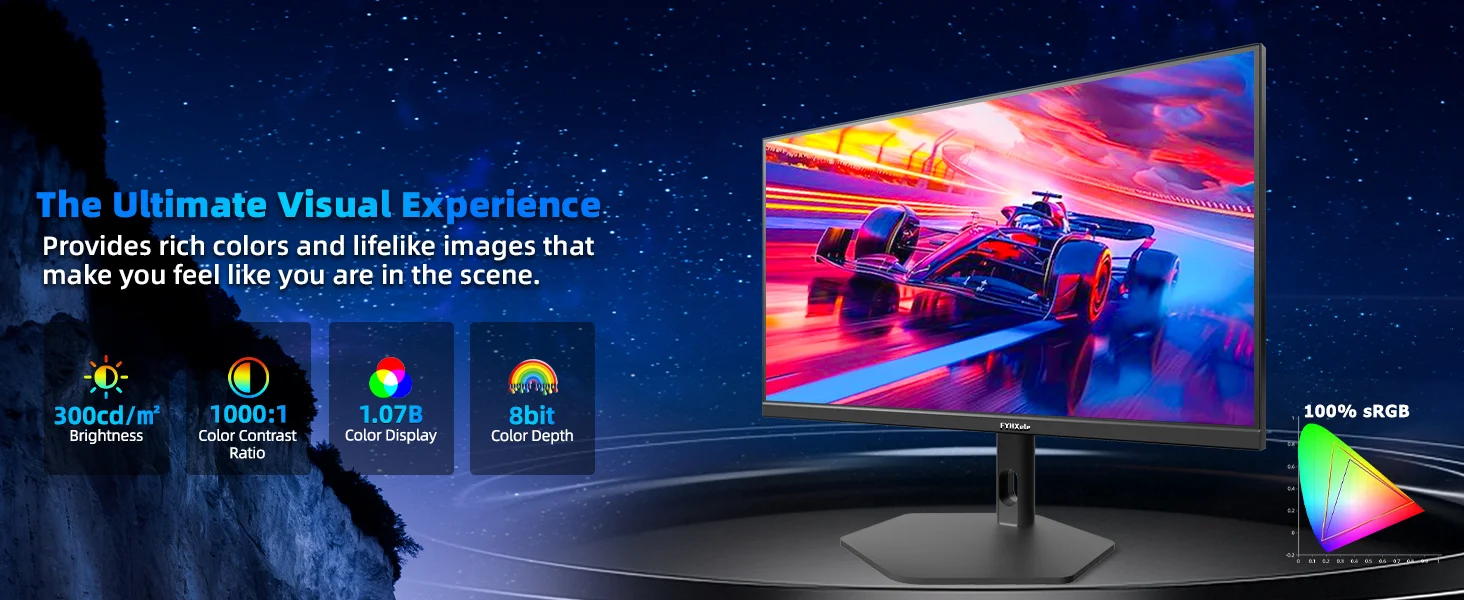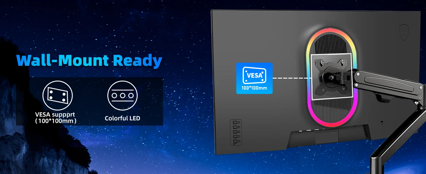 Disfrute de negros profundos y colores vivos con la tecnología de panel IPS rápida para darle vida a sus juegos.Con un 178°Amplio ángulo de visión, garantiza colores consistentes desde todos los ángulos.Soporte VESA100mm*100mm.