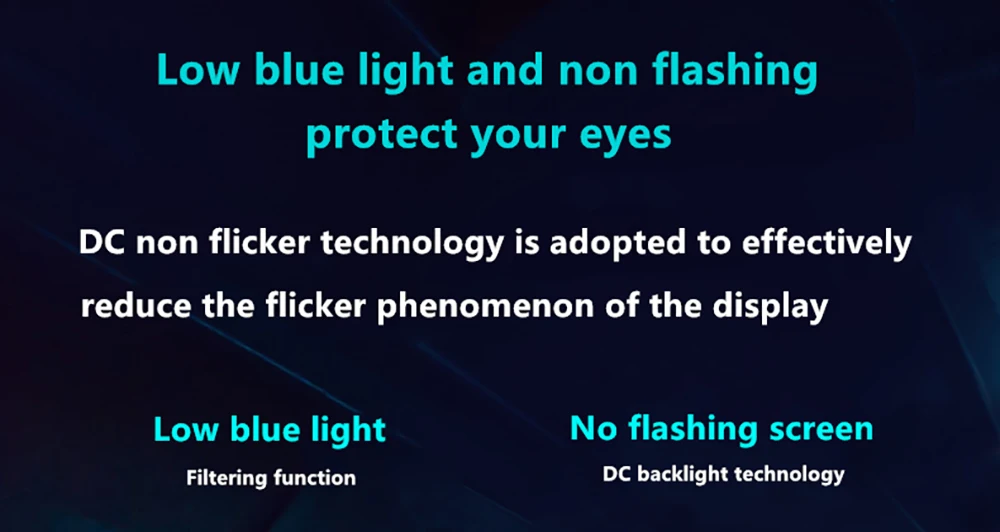 La pantalla sin parpadeo de luz azul baja le permite trabajar, ver o reproducir aplicaciones cómodamente sin fatiga ocular.