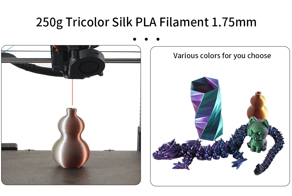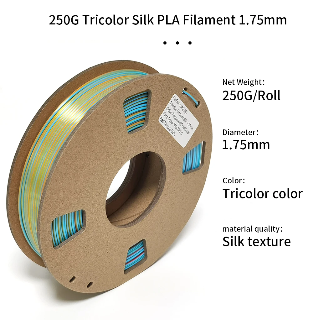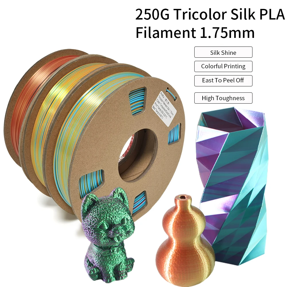 FYSETC High Quality Not StringyTricolor Silk PLA Filament 1.75mm 250G/Roll PLA 3D Printer Beautiful color Rainbow Filament
