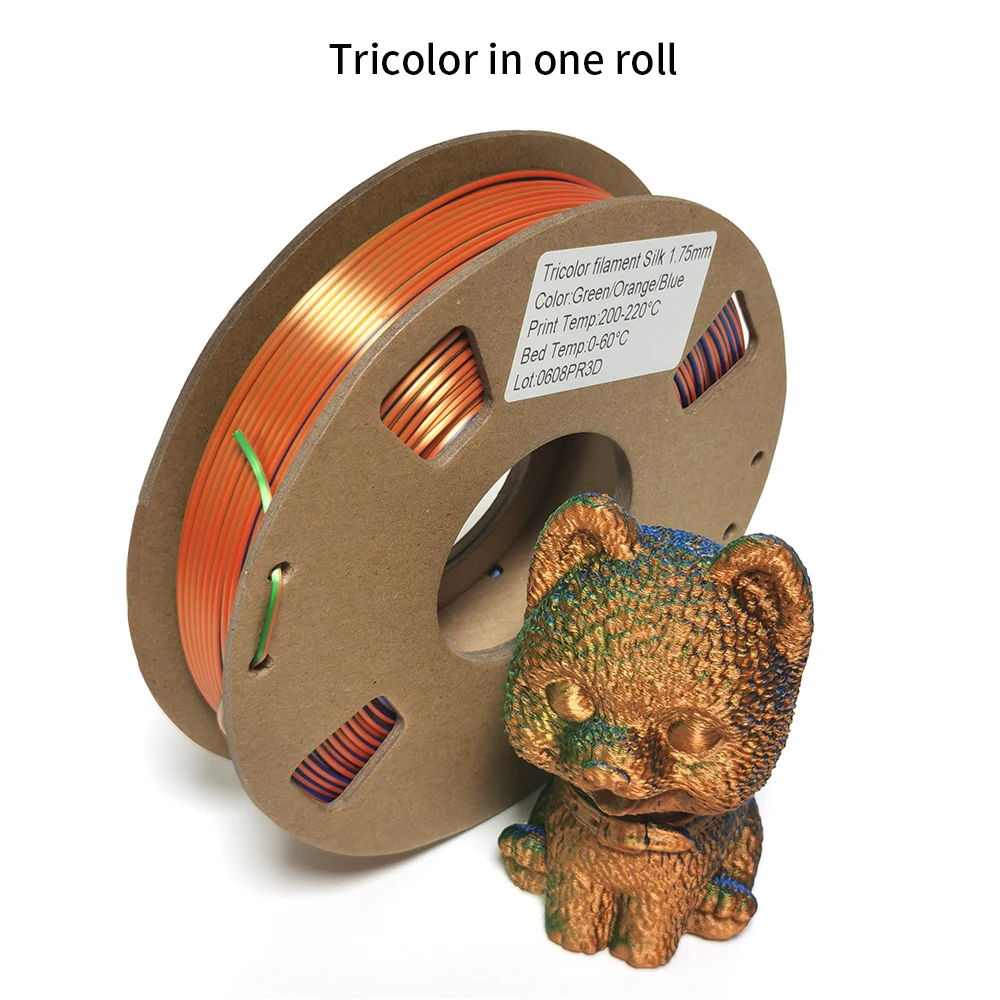 Comprar FYSETC Filamento PLA de seda Tricolor no fibroso de alta calidad 1,75mm 250G/rollo de impresora 3D PLA hermoso filamento arcoíris de Color