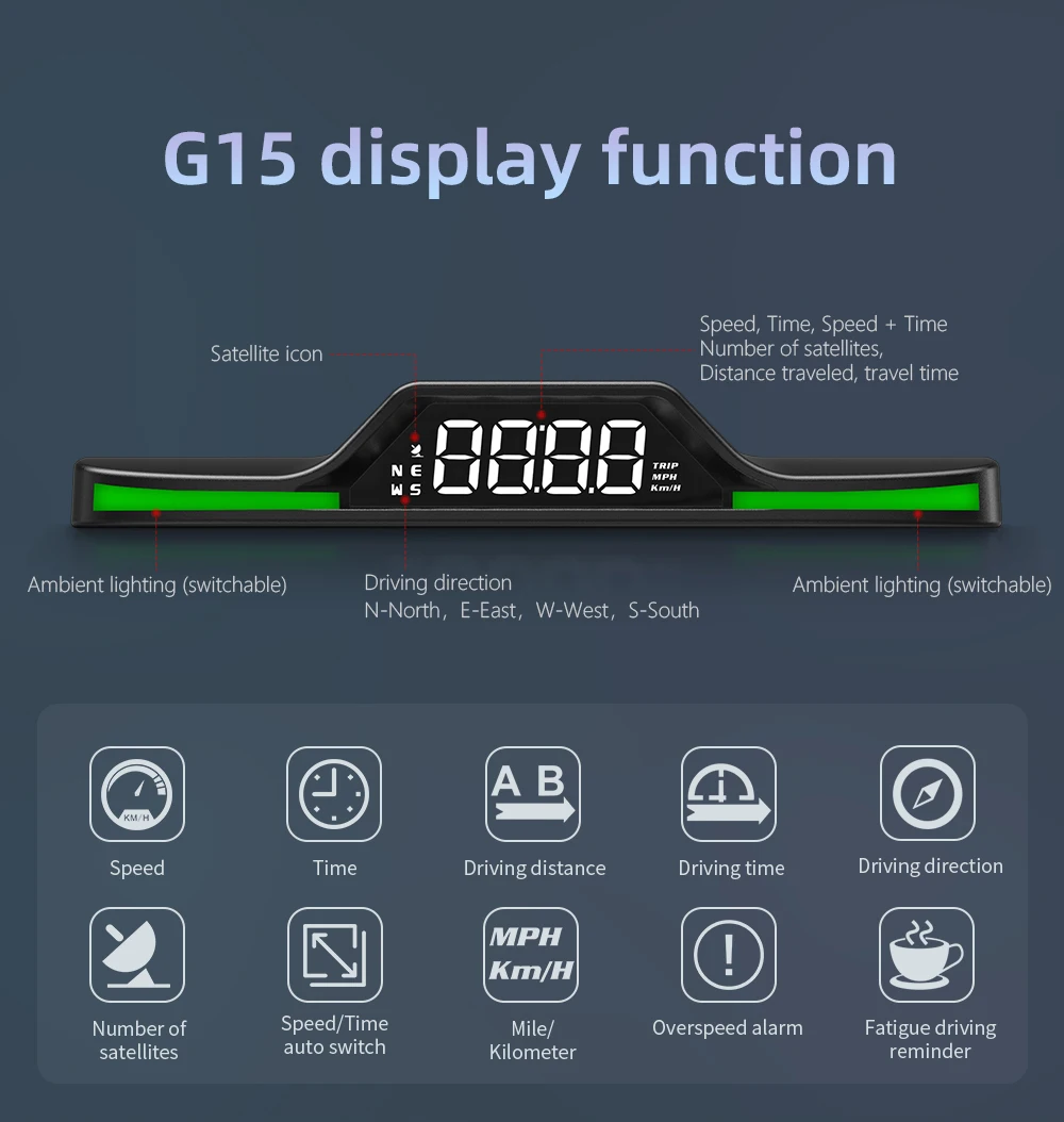 Comprar G15 GPS HUD velocímetro Digital para coche MPH KMH Head Up Display, soporte de velocidad, sincronización por satélite, accesorios electrónicos para todos los coches