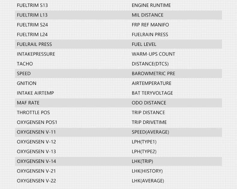2. Gasoline vehicles with OBD2 agreement produced in the United States after 2004, and gasoline vehicles with OBD2 agreement produced in other regions after 2008 can be used.